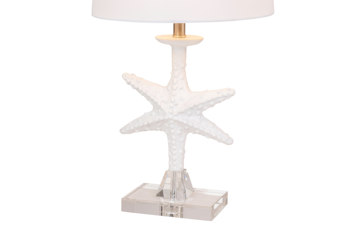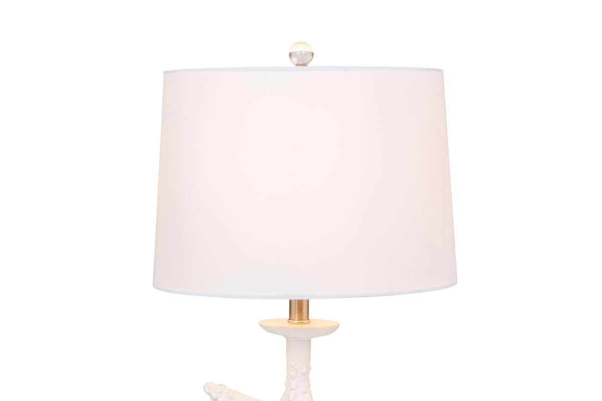 The 28-Inch White Starfish Table Lamp is more than just a lighting fixture; it's a coastal escape and a symbol of seaside living. Place it in your beach house, seaside retreat, or any space where you want to infuse the tranquility and beauty of the coast. Let this lamp transport you to the shores every time you switch it on, bringing coastal elegance and grace into your home. Some assembly required.