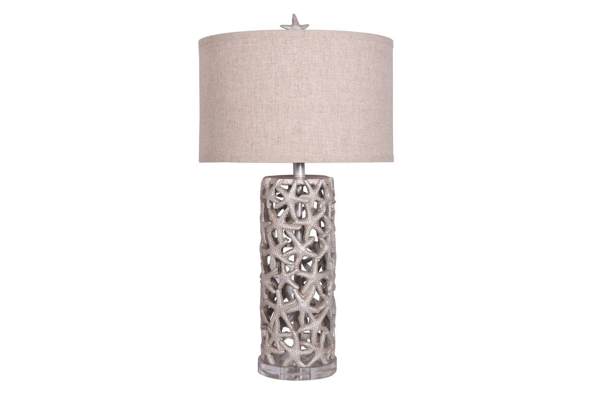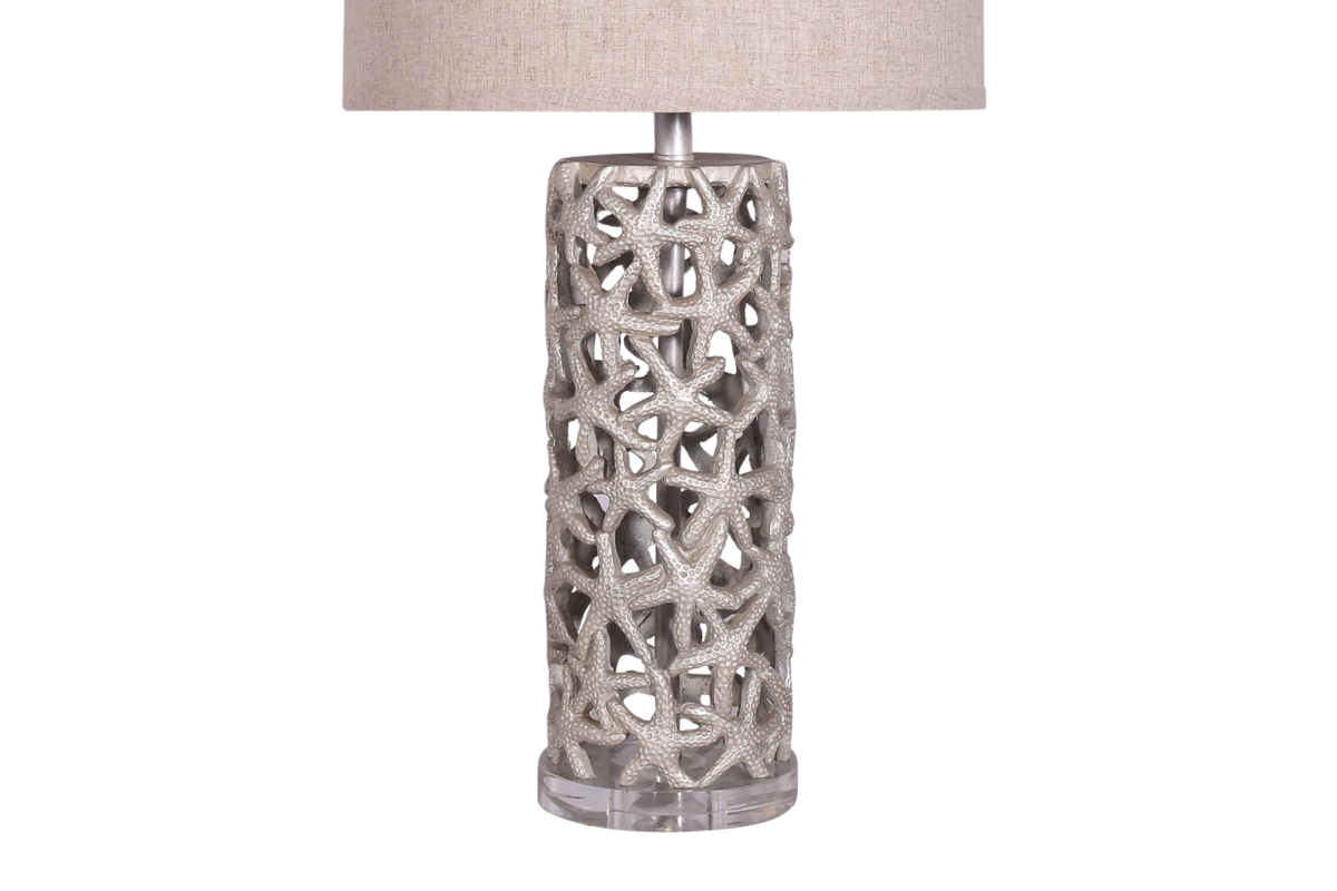 The lamp's base is crafted from durable beige poly material, designed in the shape of a star, reminiscent of coastal adventures and the beauty of the sea. Standing at 30 inches in height, it strikes a perfect balance between statement-making and versatile, making it a captivating focal point for various decor styles.