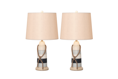 The Buoy 27" Table Lamps are more than just a lighting fixture; it's a piece of coastal paradise that infuses the serenity and allure of the sea into your home. Place it in your beach house, seaside retreat, or any space where you want to capture the essence of coastal living. Illuminate your surroundings with the soothing, beachy charm of this exceptional lamp. Some assembly required.