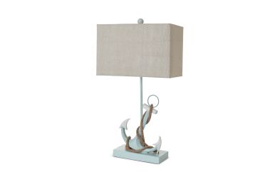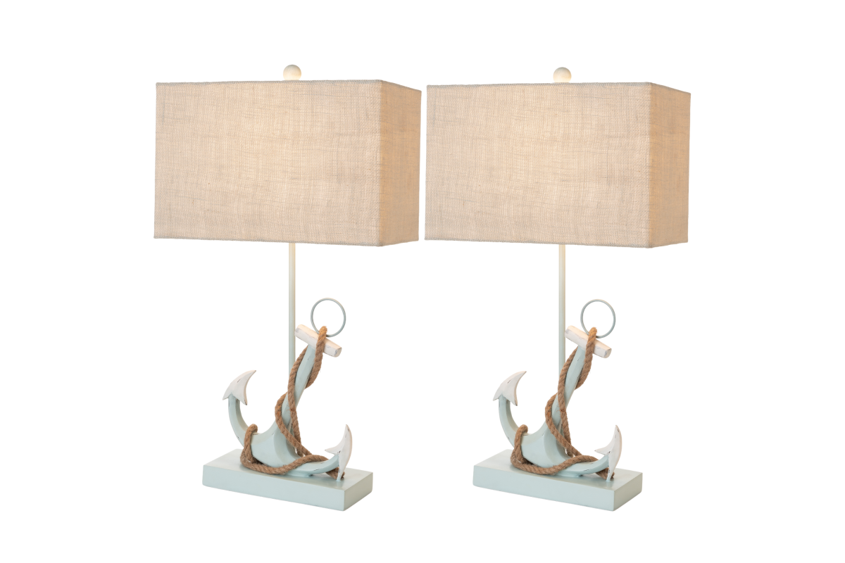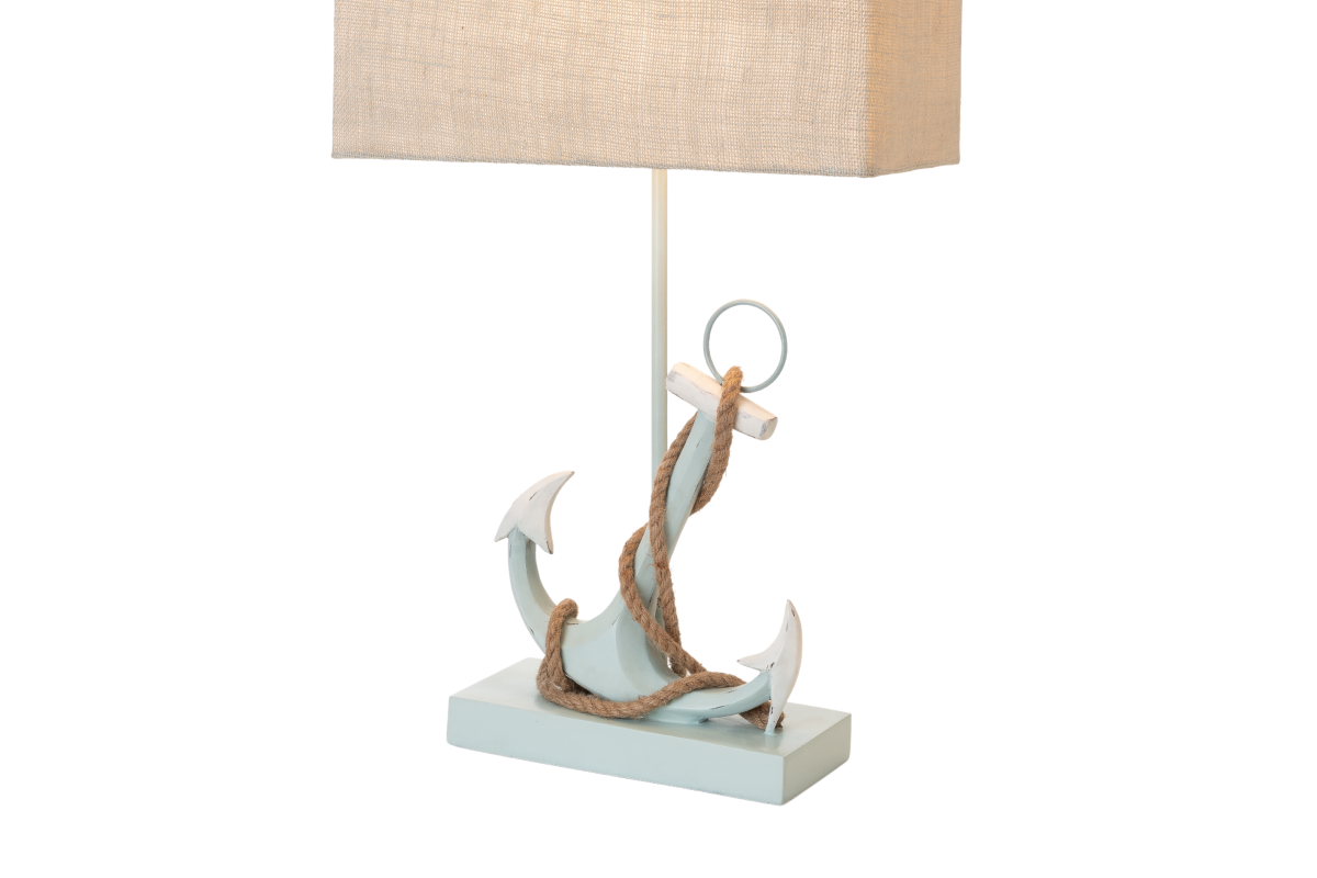 The lamp's base, meticulously crafted from durable poly resin, replicates the iconic anchor design in a soothing blue finish. Standing at 28 inches, it effortlessly combines coastal charm with a versatile presence that complements various decor styles. The blue finish adds a touch of coastal serenity and visual interest, evoking memories of the sea and its calming influence.