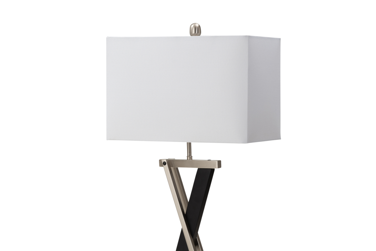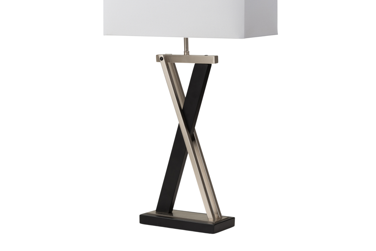 The 28.5-Inch X-Shaped Black and Silver Metal Lamp is a true testament to the beauty of contemporary design. Whether placed in your living room, bedroom, or any space where you want to make a bold style statement, this lamp promises to be a captivating addition. Illuminate your surroundings with sophistication and grace using this exceptional table lamp. Some assembly required.
