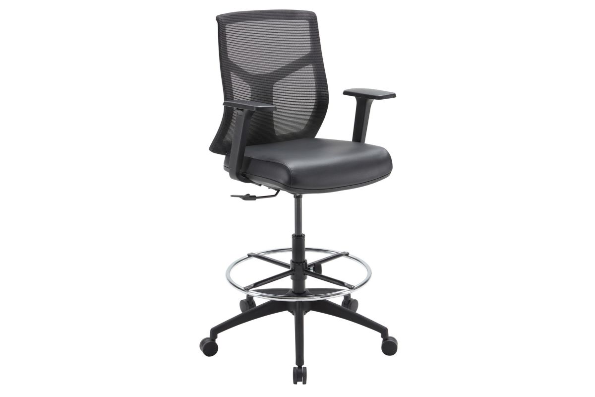 The Starlight Mid Back Stool offers ergonomic support with modern design, perfect for standing desks or high workspaces. Featuring adjustable seat and arm height, 360-degree swivel, and adjustable lumbar support, this stool adapts to your posture and movement for all-day comfort. The waterfall front seat cushion with soft padding provides extra support, while the breathable mesh back enhances airflow. Built with a five-star nylon base and adjustable height chrome footring, the stool is both durable and stylish. Its sturdy design supports up to 300 lbs, making it a reliable option for any workspace. Available in a variety of seat materials, including fabric and PU leather and genuine leather, you can customize the look to fit your aesthetic. Assembly is required.