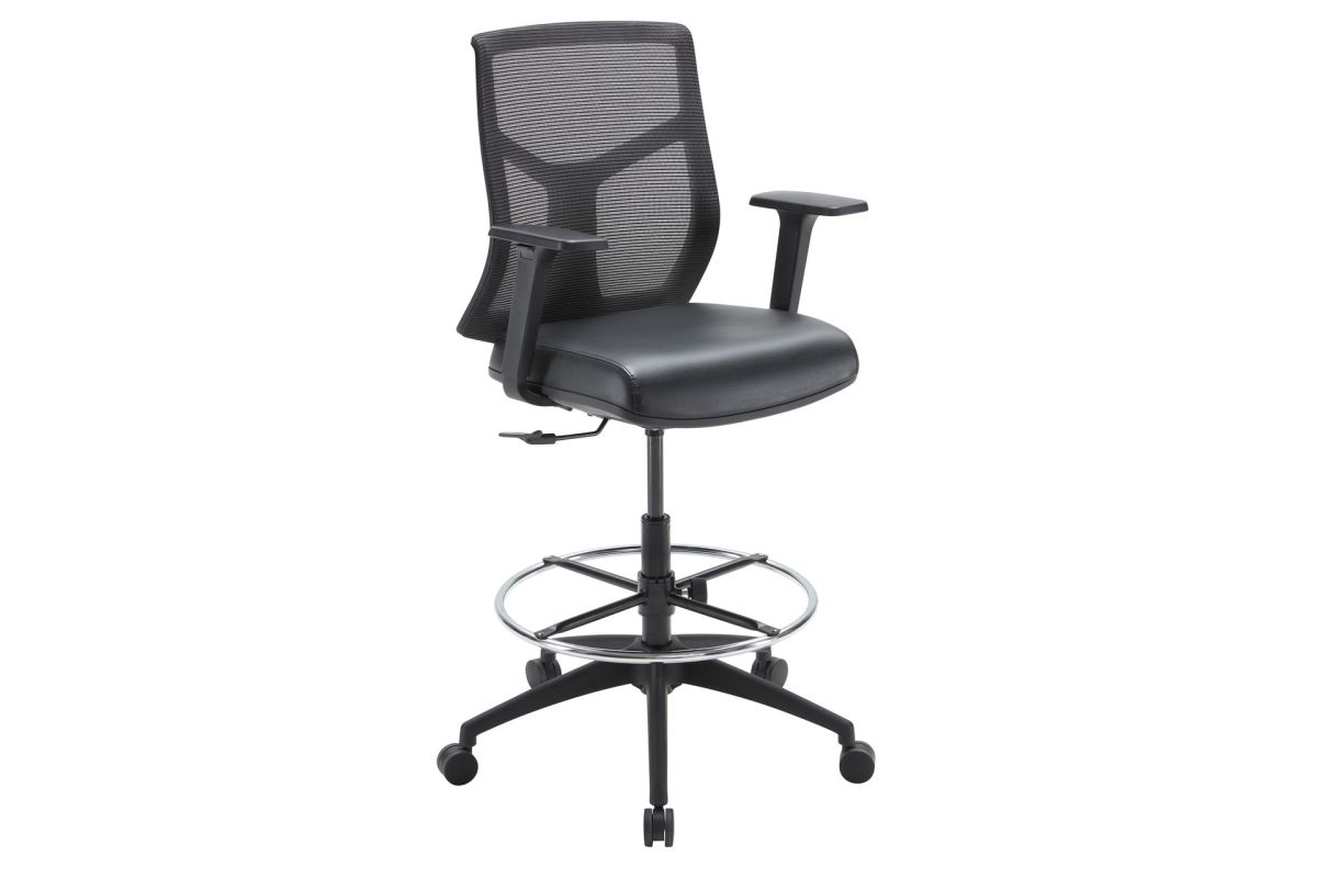 The Starlight Mid Back Stool offers ergonomic support with modern design, perfect for standing desks or high workspaces. Featuring adjustable seat and arm height, 360-degree swivel, and adjustable lumbar support, this stool adapts to your posture and movement for all-day comfort. The waterfall front seat cushion with soft padding provides extra support, while the breathable mesh back enhances airflow. Built with a five-star nylon base and adjustable height chrome footring, the stool is both durable and stylish. Its sturdy design supports up to 300 lbs, making it a reliable option for any workspace. Available in a variety of seat materials, including fabric and PU leather and genuine leather, you can customize the look to fit your aesthetic. Assembly is required.