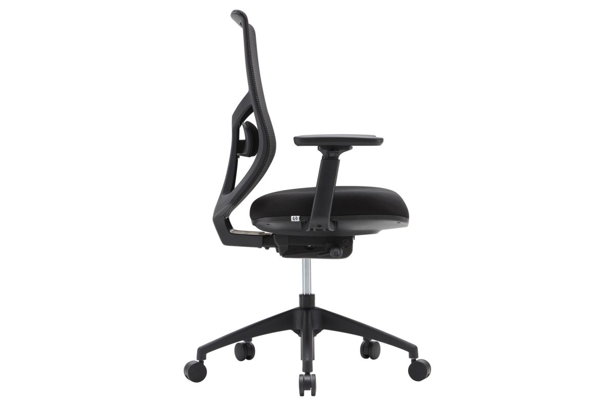 - Upholstered waterfall front seat available in your choice of a wide variety of colors complemented by a unique textured mesh back