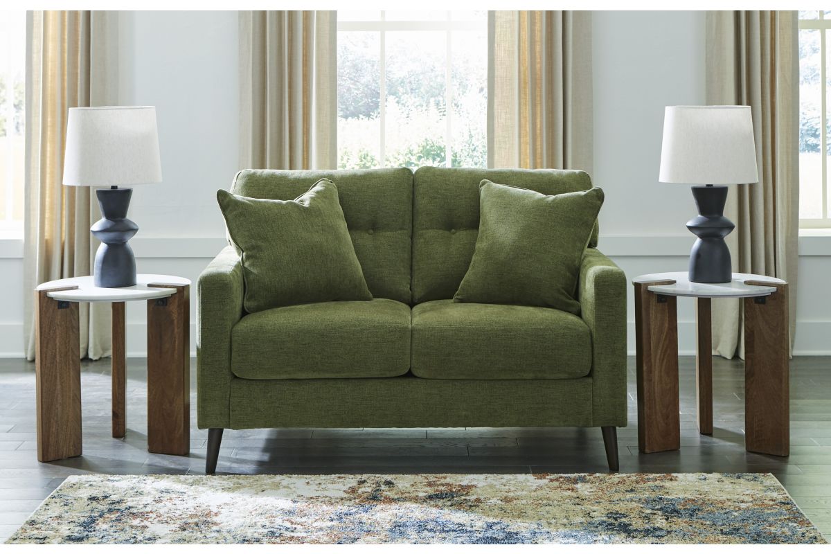 Feed your mid-century modern nostalgia—with a contemporary twist. A vibrant trend-right hue and comfy feel make this loveseat perfect for lounging solo or with friends and family. Its linear profile adds plenty of fresh style, and the tapered accent legs are a nice revival.