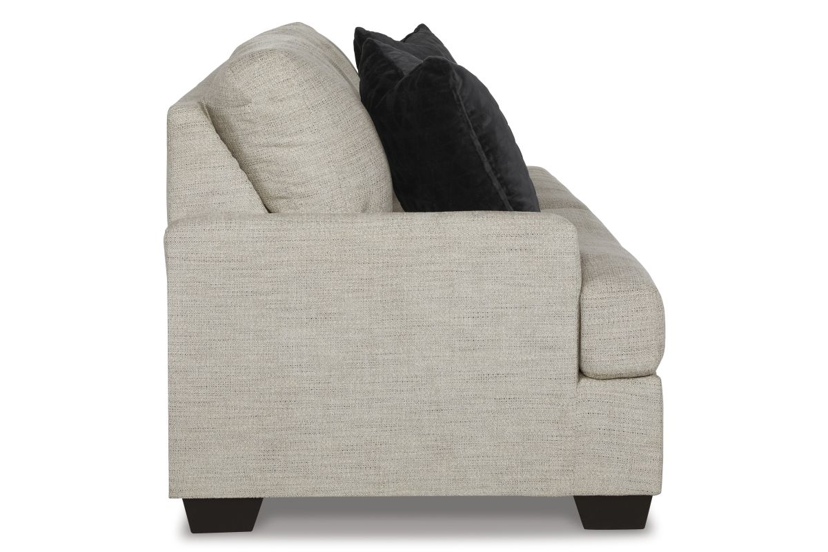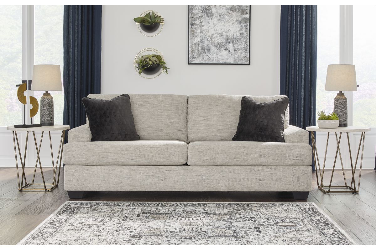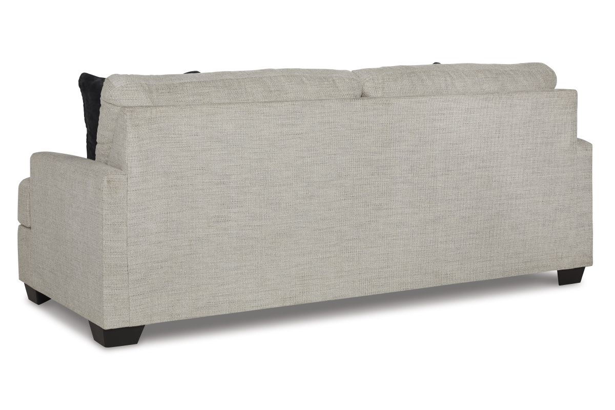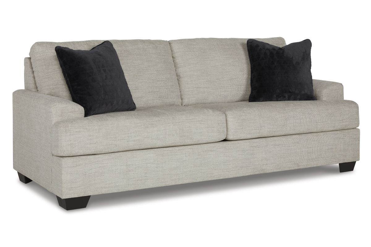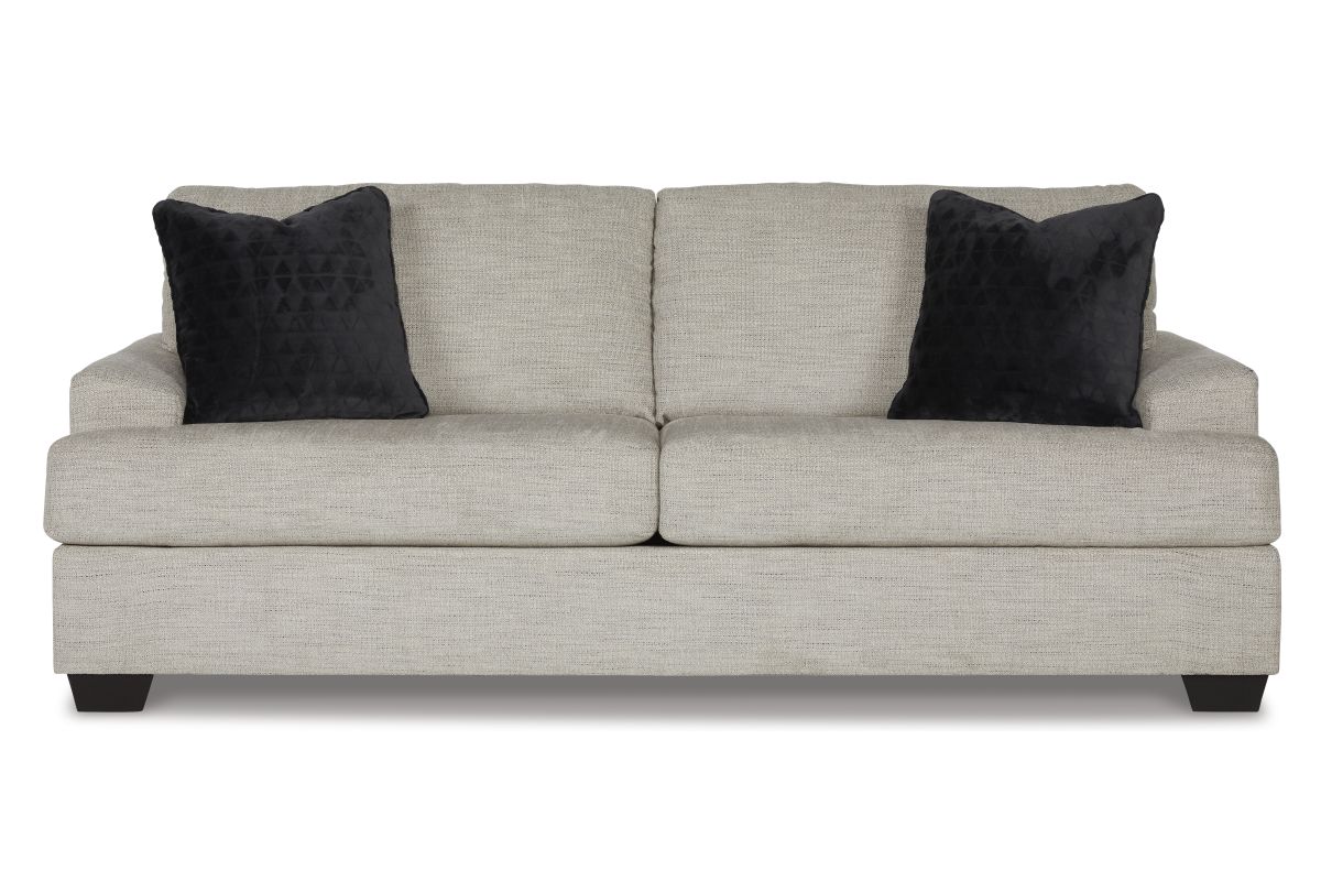 Laid-back luxury meets neutral practicality in this sofa. Taking its cues from contemporary design, the clean-lined piece is outfitted with angular arms for a layer of geometric expression. Softly upholstered, sizable cushions keep you comfortable, while black faux fur accent pillows bring a touch of soft glam. With this sofa, winning style and superb functionality go hand in hand.