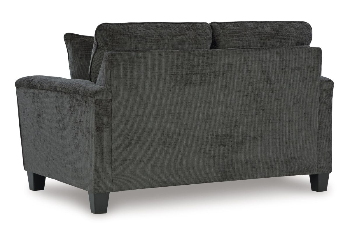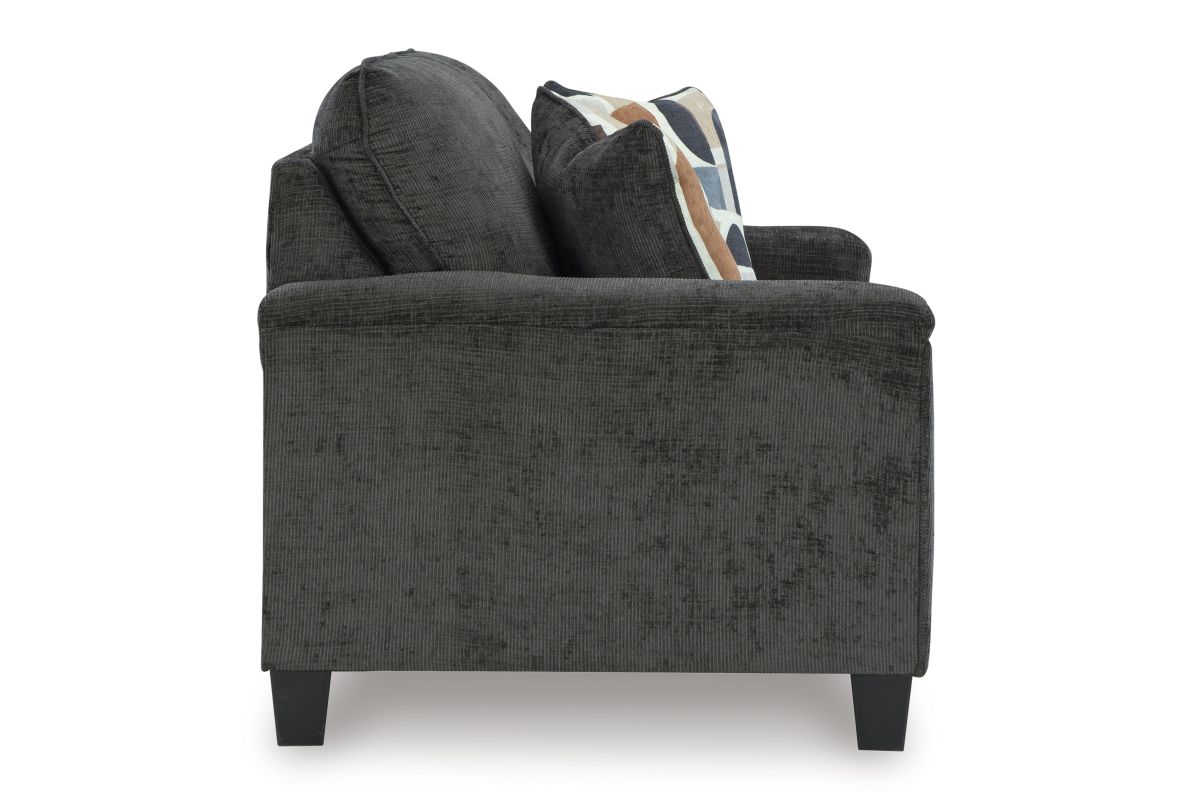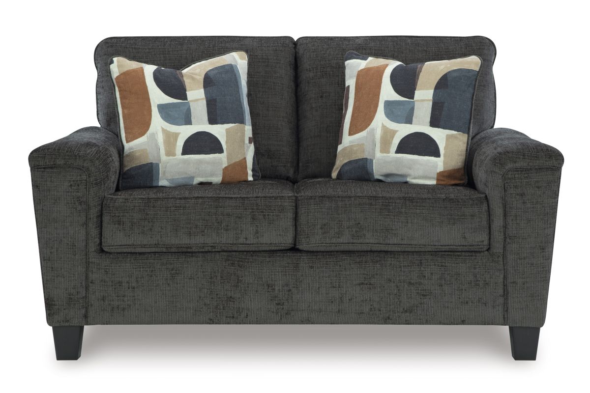 There’s something about this loveseat that’s so easy to appreciate. Maybe it’s the plush upholstery and soothing tone, eager to support your quest for total relaxation. Perhaps it's the modern flair of its simple lines, tapered legs and abstract-patterned pillows. Whatever it is that appeals to you, this is a piece you're gonna love.