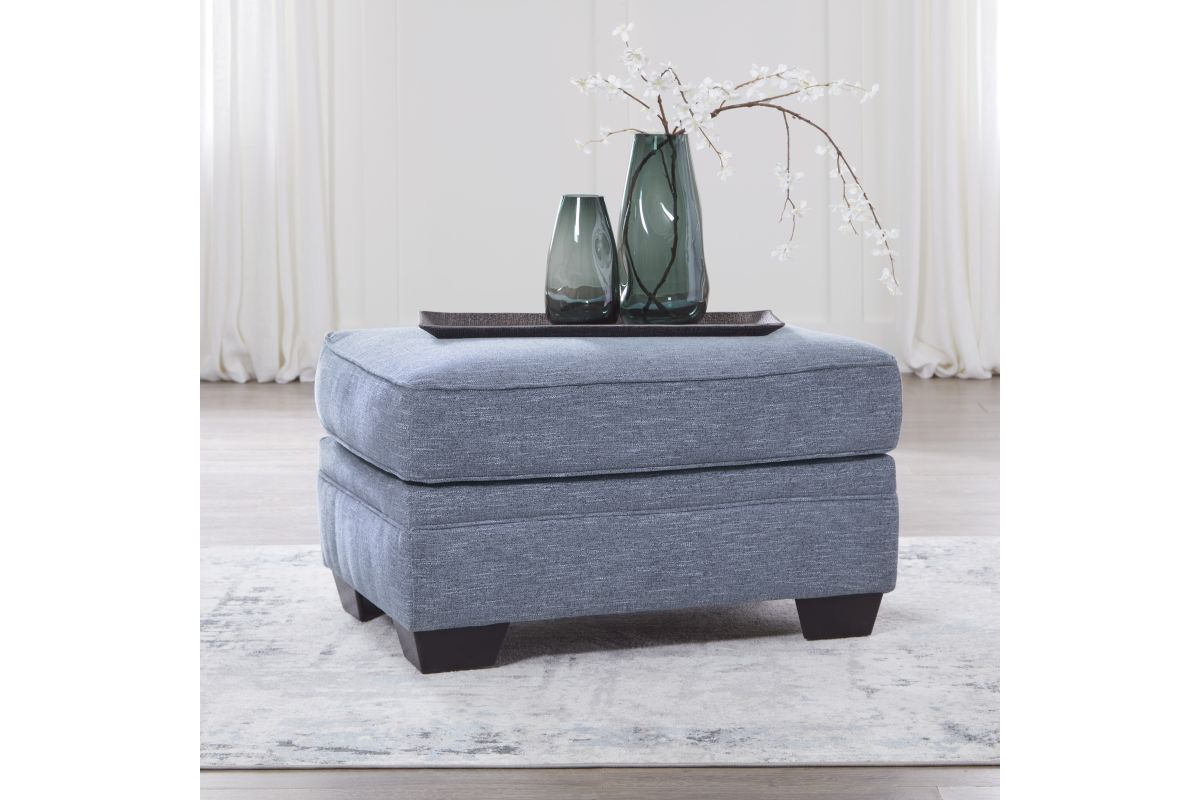 This ottoman is defined by comfort, convenience and classic style. Soft to the touch and stain-resistant, its family-friendly Next-Gen Nuvella™ fabric is easy to maintain. And you'll love the universal appeal of its denim-inspired hue. The perfect companion to your chair or sofa, the ottoman is a simply chic approach to everyday relaxation.