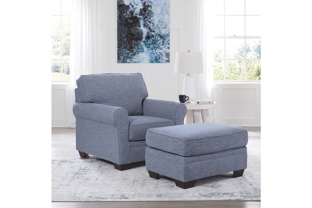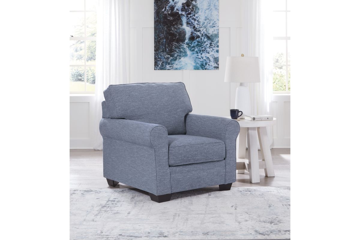 This chair is defined by comfort, convenience and classic style. Soft to the touch and stain-resistant, the family-friendly Next-Gen Nuvella™ fabric is easy to maintain. And you'll love the universal appeal of its denim-inspired hue. With roll arms adding a dash of traditional flair, the chair is a simply chic approach to everyday relaxation.