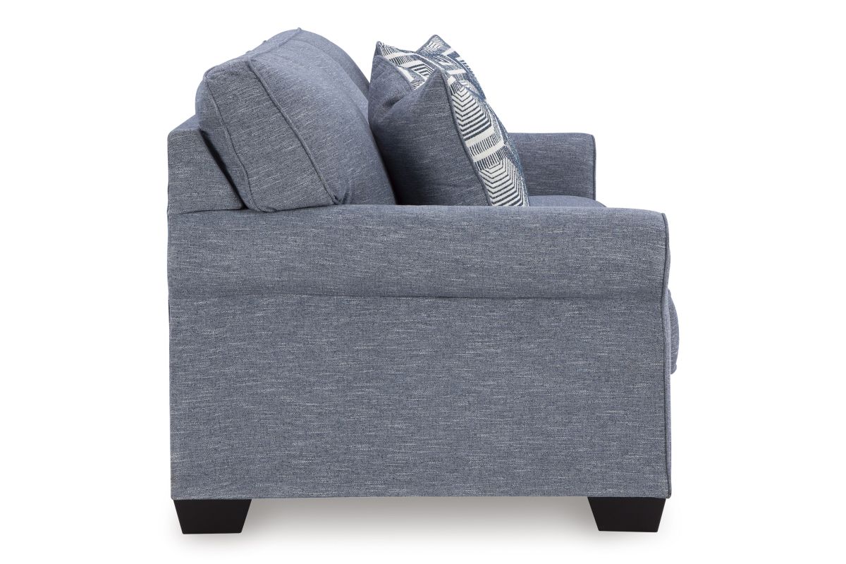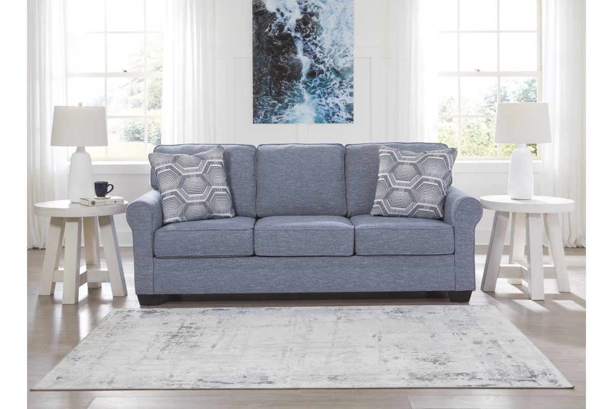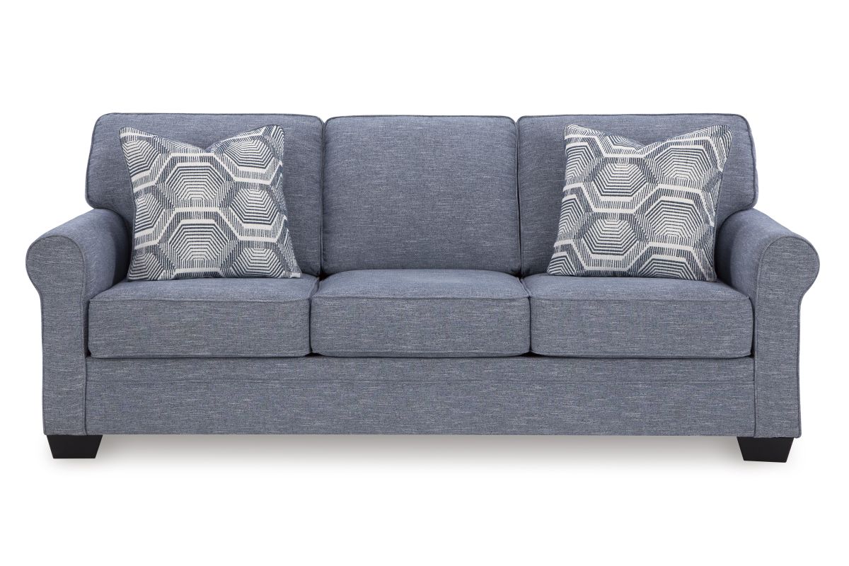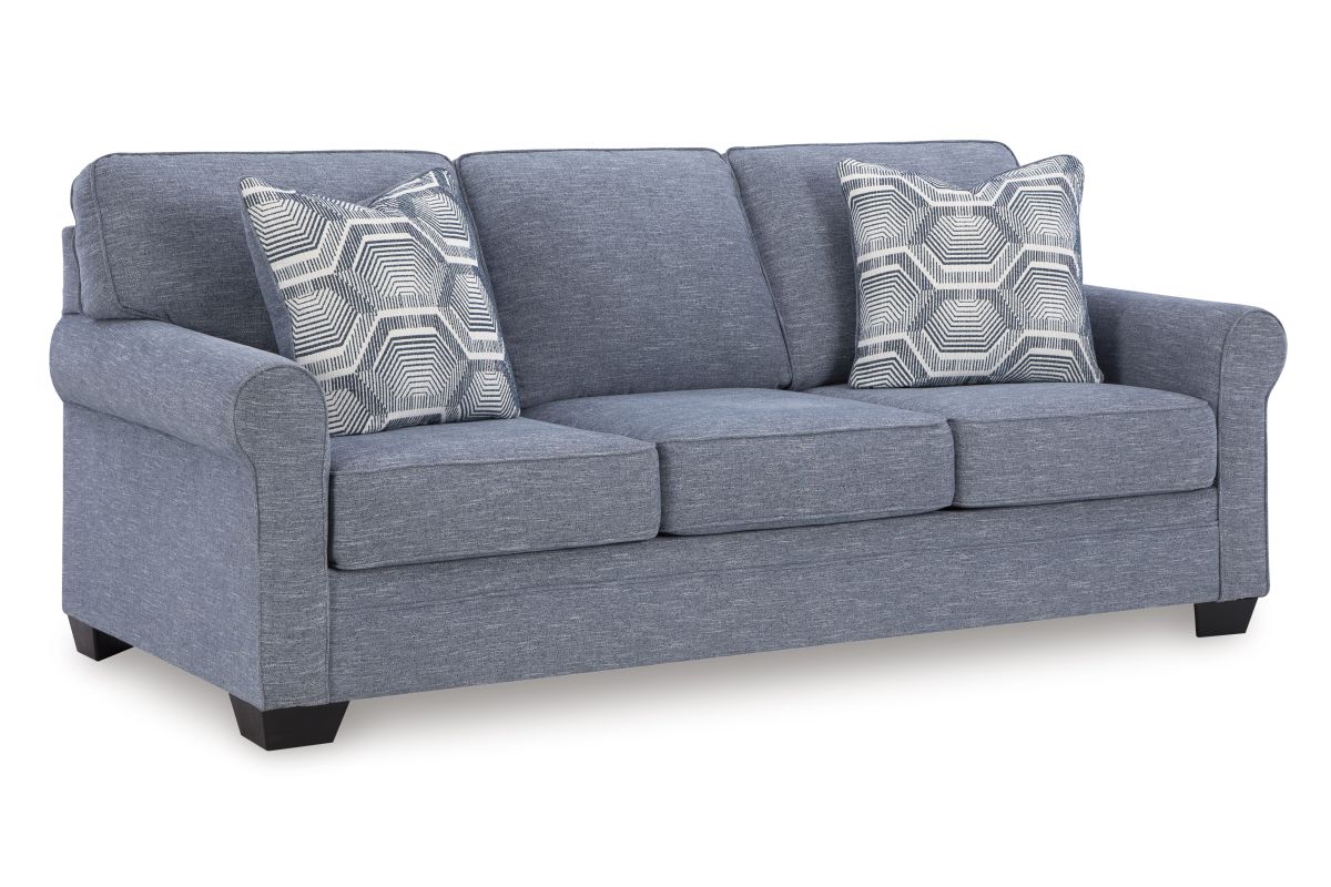 This sofa is defined by comfort, convenience and classic style. Soft to the touch and stain-resistant, the family-friendly Next-Gen Nuvella™ fabric is easy to maintain. And you'll love the universal appeal of its denim-inspired hue. With roll arms adding a dash of traditional flair, the sofa is a simply chic approach to everyday relaxation.
