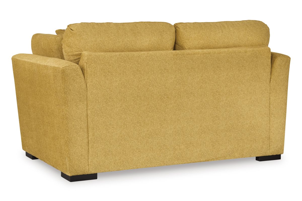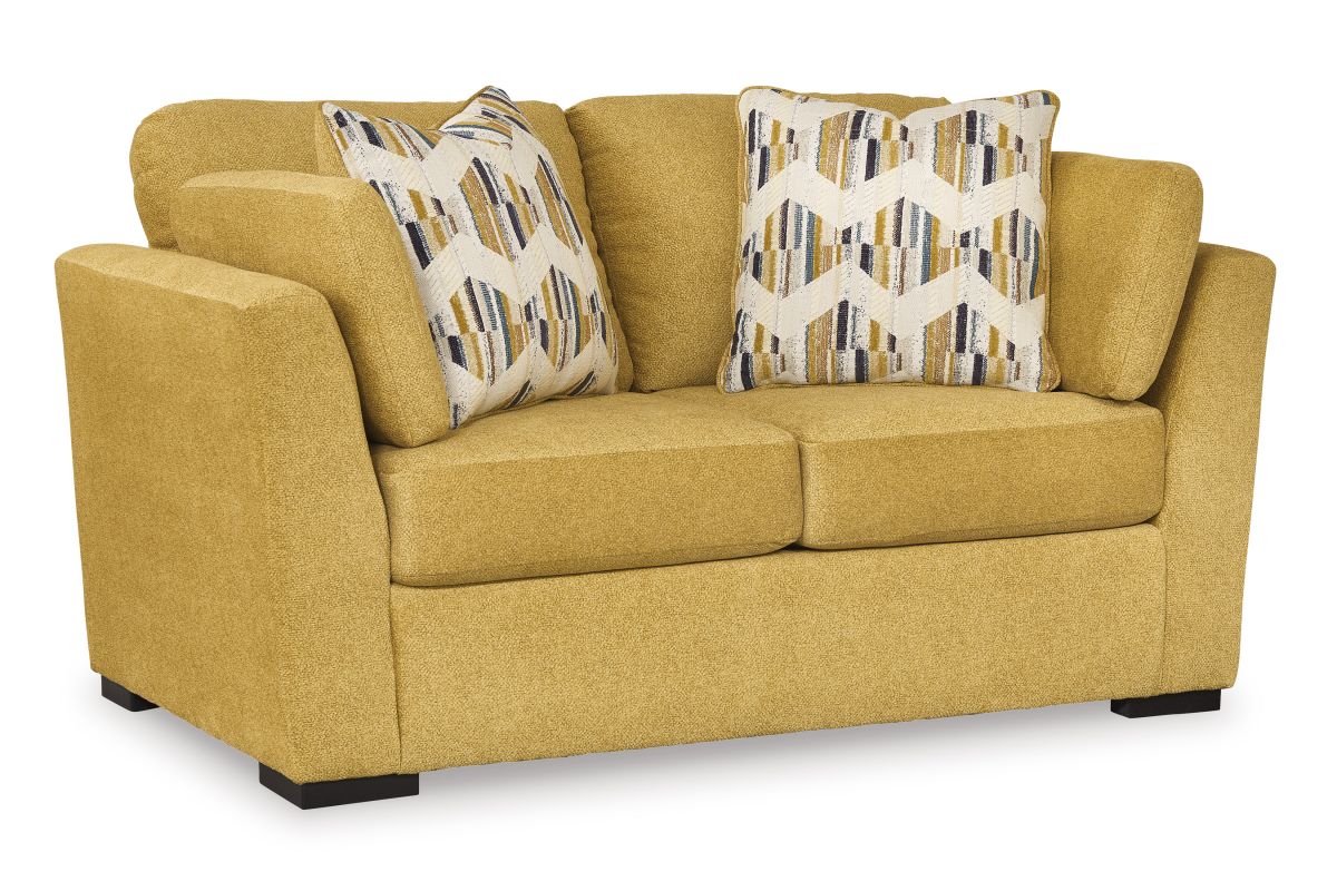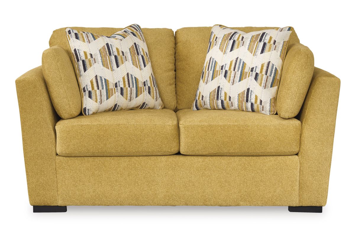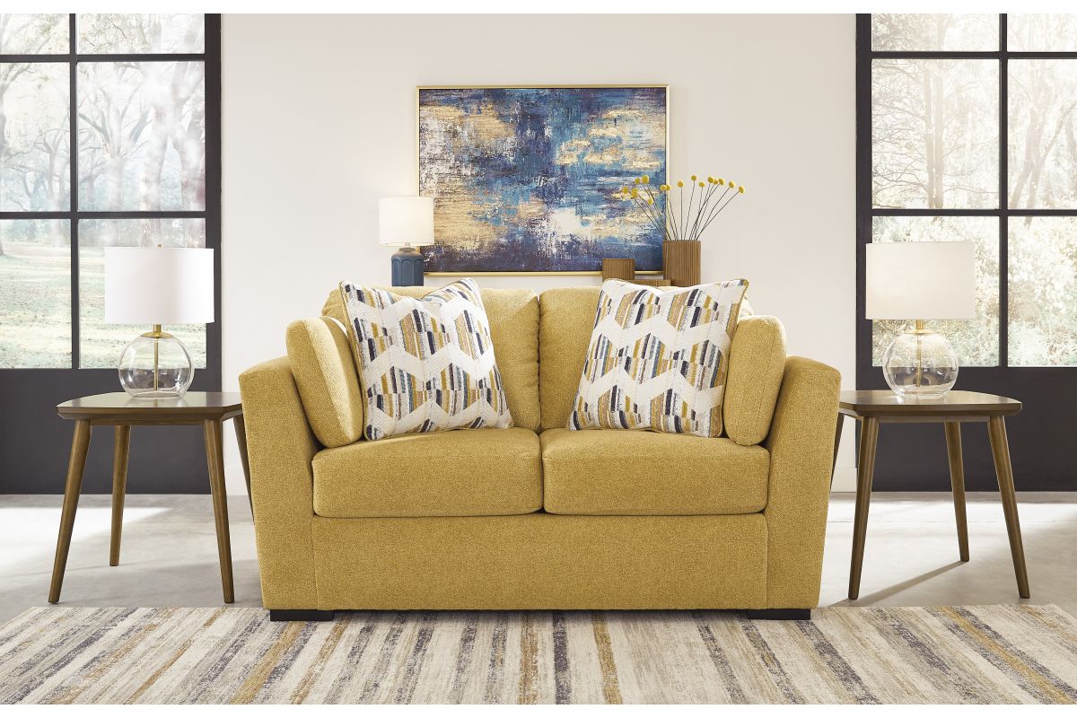 You want your home to reflect your modern, trendy eye for design. This loveseat is here to help. Bold, bright and beautiful, it adds a fashion-forward pop of color to your living room. Velvet-like upholstery and matching bolster pillows keep comfort at top of mind, whether you're lounging around or entertaining guests. How’s that for fresh style and functionality?