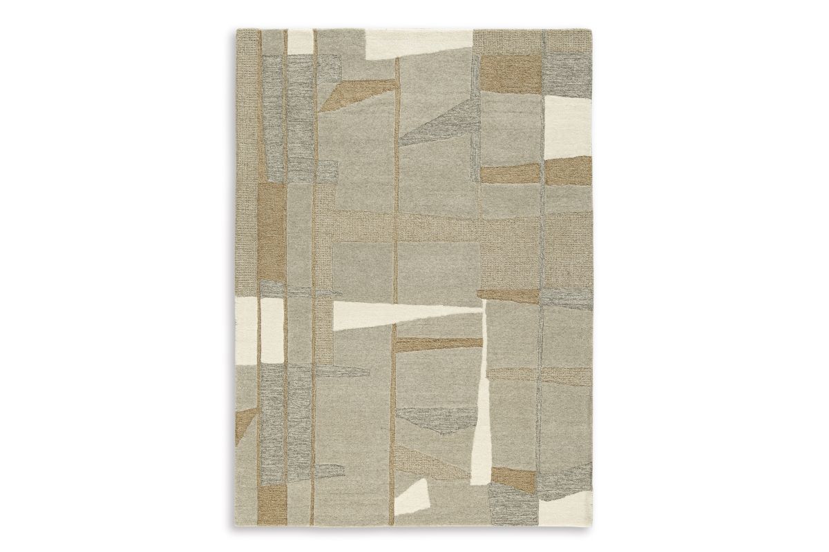 Abstract imagery and a medley of neutral tones give this rug loads of visual interest and a lot of versatility. The hand-tufted pile is rich with feel-good texture. Be it in casual gathering places or formal spaces, it has a look that feels right at home.