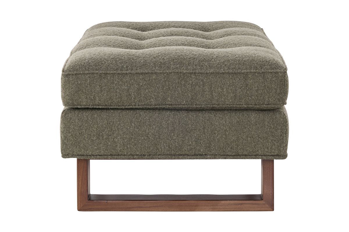 Designed with clean, tailored lines and supported by a sleek walnut base, the Bennett Ottoman carries the same retro-meets-modern aesthetic that defines the collection. Its generously cushioned top offers a comfortable place to rest your feet, an extra seat when entertaining, or even a stylish surface for a decorative tray.
