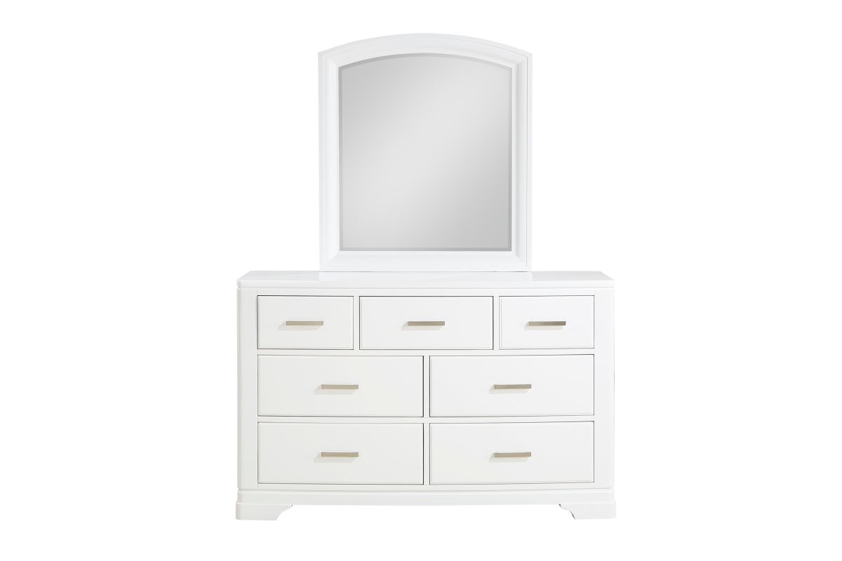The intersection of modern lines and understated transitional style blend to create the Hudson Collection. Available in a white finish, the mirror frame presents a decoratively versatile addition to your bedroom. The curved design of the mirror's frame lends subtle decorative shape to the collection. Assembly required.