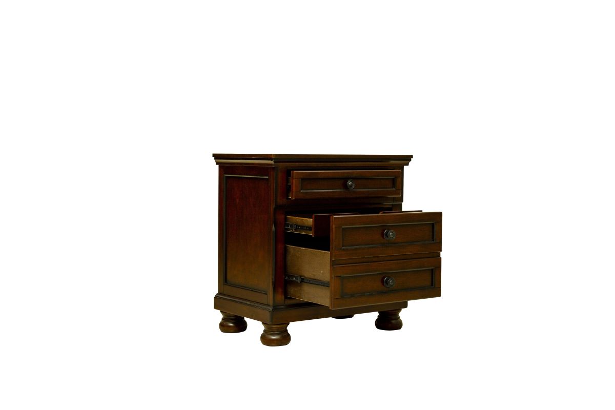 Designed to be as smart as it is stylish, the Begonia Nightstand is the perfect bedside companion. Two easy-glide drawers provide everyday storage, while a discreet hidden jewelry tray keeps valuables tucked away. Finished in the collection’s signature tone and accented with classic hardware and bun feet, this nightstand delivers timeless design with a clever twist. Sophistication meets security — right within arm’s reach. Assembly required.