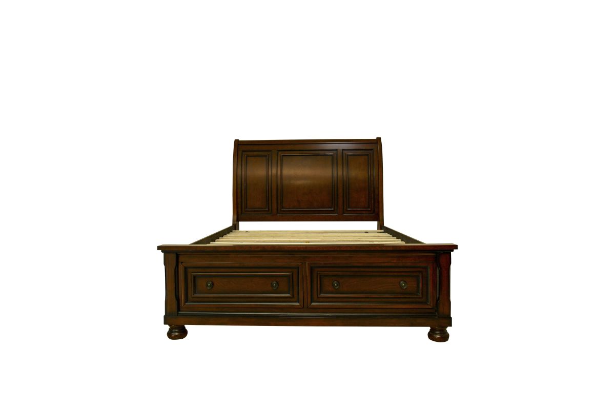 Crafted in a warm grayish-brown hue, this Eastern King storage bed from the Begonia collection blends classic sleigh-bed elegance with functional design. It features framed drawer fronts accented by tasteful knob hardware and rests on chic bun feet, offering generous underfoot storage and a sculpted silhouette that enhances any transitional bedroom. Assembly required.