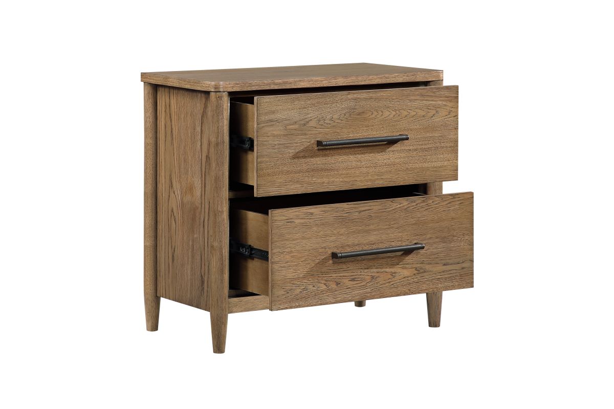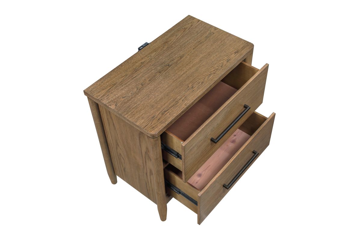 Elevate your bedside with the sophisticated and functional nightstand. Expertly crafted from a blend of durable hickory veneer, wood, and engineered wood, and finished in a rich brown tone, this nightstand offers both timeless elegance and modern convenience. It features two smoothly operating dovetail drawers with full-extension ball-bearing glides, providing ample storage for your essentials. The bottom drawer boasts a cedar veneer lining, ideal for protecting delicate items, while built-in USB-A and USB-C charging ports ensure your devices are always powered up. Best of all, it arrives fully assembled, ready to enhance your bedroom immediately.