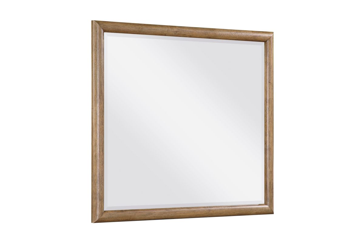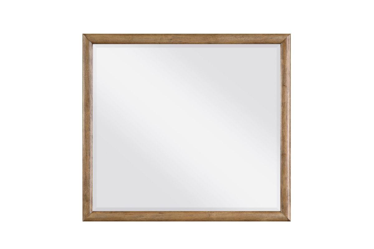 Revitalize your bedroom with the sophisticated charm of the framed mirror. Crafted from a durable blend of hickory veneer, wood, and engineered wood, and showcasing a rich brown finish, this mirror is designed to add depth and elegance to your space. Its expansive reflective surface brightens any room, making it feel larger and more inviting, while the robust wood frame provides a timeless aesthetic. Perfect for pairing with a dresser or mounting on its own, this mirror is a versatile and essential accent for any bedroom aiming for a refined look. Assembly required.