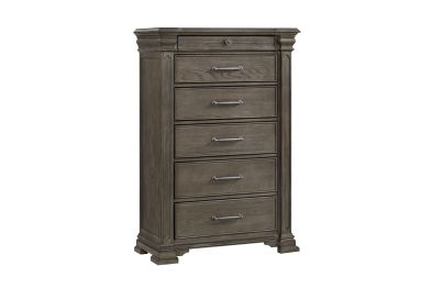 The 6-Drawer Chest in Grey is a stunning storage solution for any bedroom. With six spacious drawers, there is plenty of room to organize your clothes and belongings. The top drawer is lined with black felt, providing a luxurious space for delicate items. The bottom drawer features cedar veneer, offering a fresh scent and protecting your belongings from pests. The elegant molding adds a touch of sophistication to the chest, while the combination of knob and pull handles allows for easy access to your stored items. This stylish and functional piece will elevate the look of any bedroom while providing ample storage space.