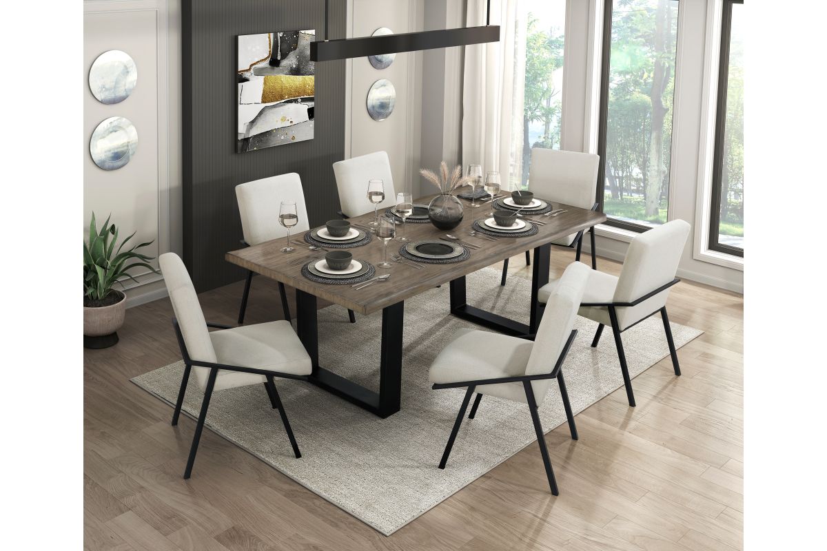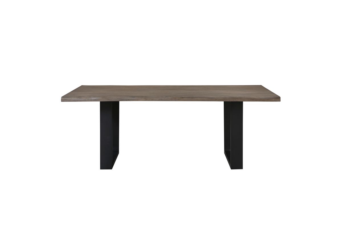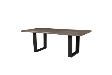 Create a modern and inviting dining space with this oak veneer dining table. Featuring a tabletop crafted from oak veneer and engineered wood in a natural oak finish, paired with a sleek black powder-coated metal base, this table offers a blend of rustic warmth and contemporary style. Comfortably seating six, it's perfect for family meals or dinner parties. The durable construction and minimalist design make this table a versatile and stylish centerpiece for any dining room or kitchen. Assembly is required.
