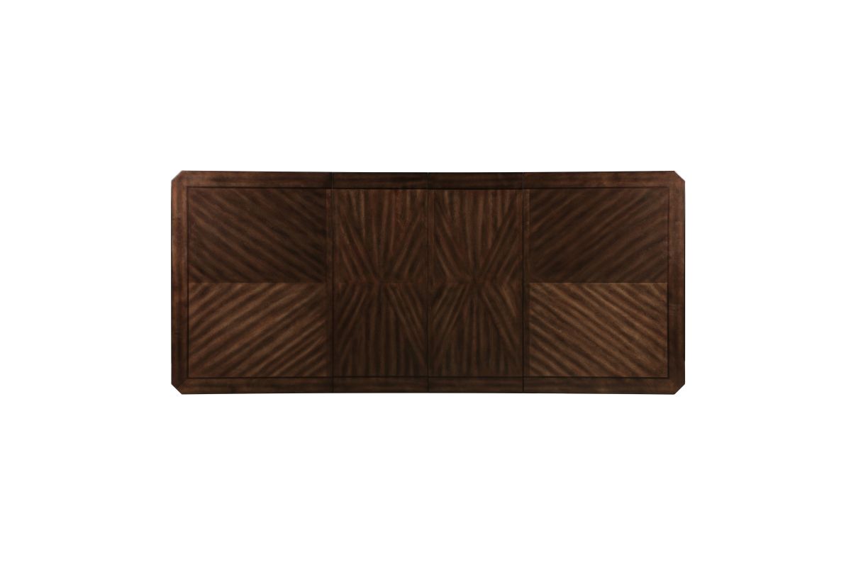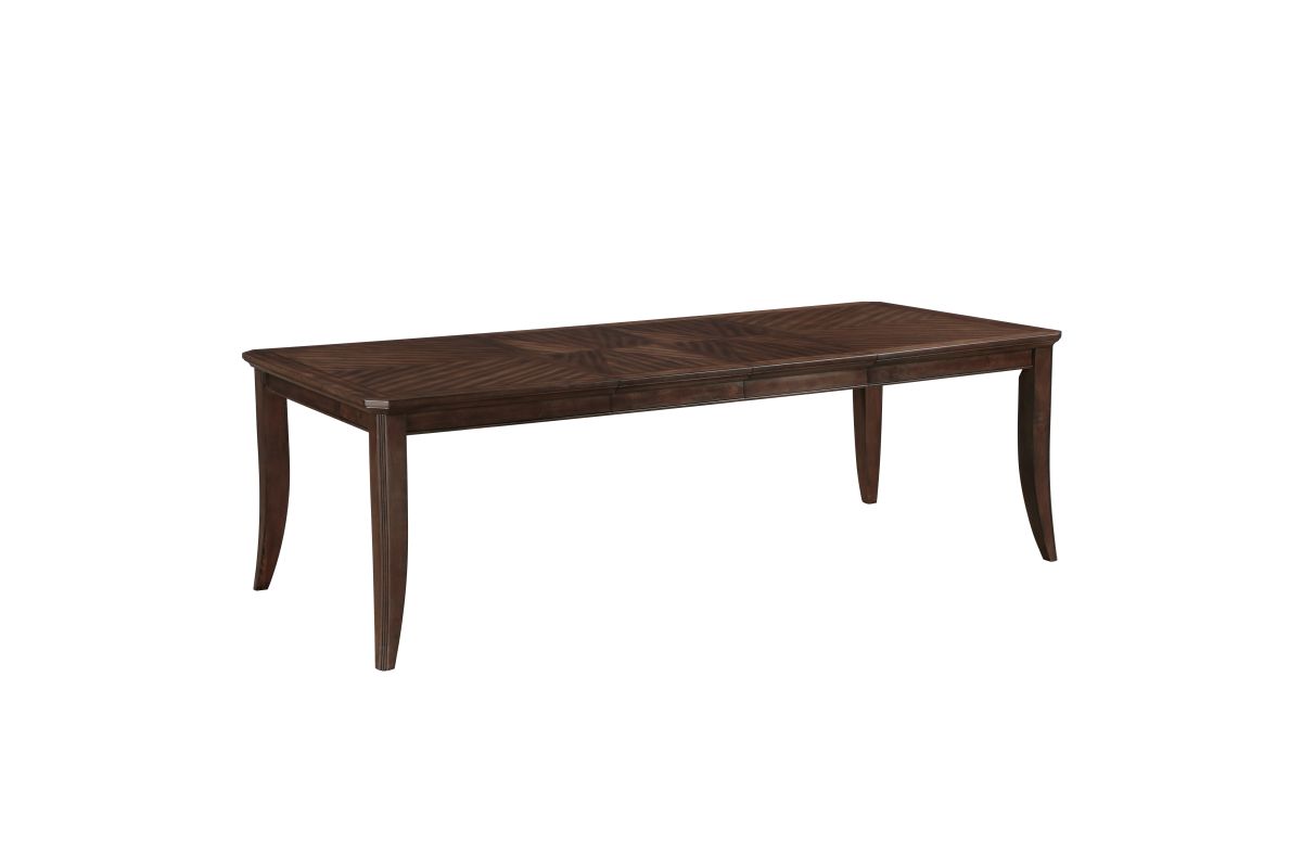 Elevate your dining experience with this elegant extendable dining table, designed to comfortably seat up to eight guests. Crafted from high-quality birch veneer, solid wood, and engineered wood, this table showcases a rich cherry finish complemented by a sophisticated dark walnut inlay, adding a touch of classic charm to any dining space. The versatile design features a separate extension leaf that easily integrates by pulling both ends of the table and dropping the leaf into place, providing seamless flexibility for gatherings of any size. Assembly is required, but the transformation of your dining area into a welcoming and stylish hub for family and friends is well worth the effort.
