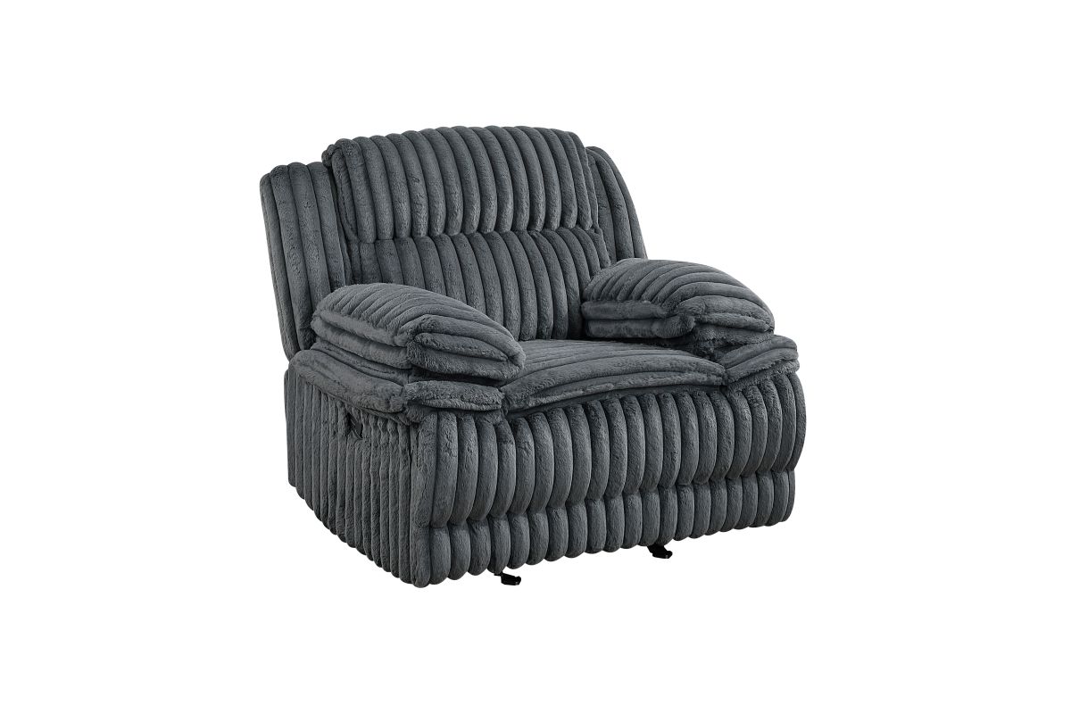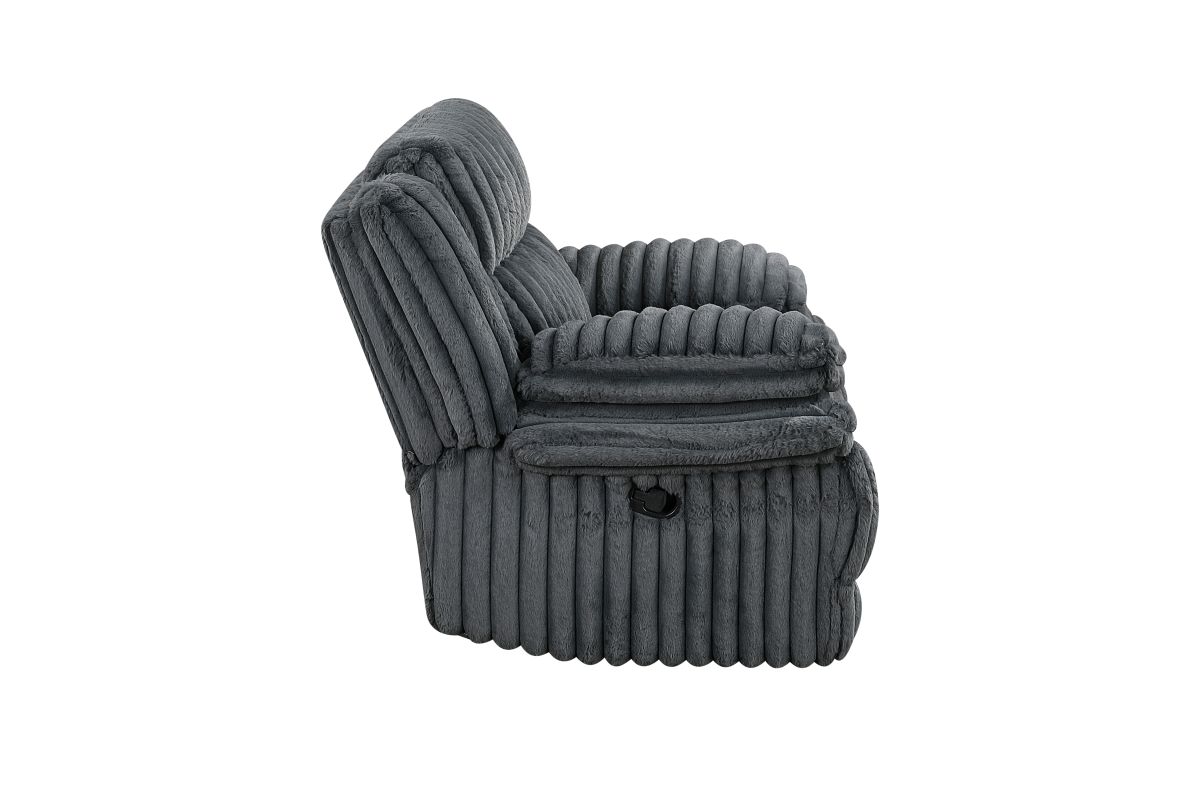 Experience luxurious comfort and effortless relaxation with this oversized manual glider recliner, designed for plush seating and smooth gliding motion. Featuring a pull-tab reclining function, deeply cushioned seating, and extra-wide pillow-top armrests, this recliner provides exceptional lumbar and full-body support for the ultimate lounging experience. Upholstered in ultra-soft ribbed corduroy fabric, it adds a trendy, cozy aesthetic to any living space. The smooth gliding mechanism allows for gentle motion, making it perfect for nurseries, living rooms, or home theaters. Built with a sturdy metal seat frame and reinforced reclining system, this recliner ensures long-lasting durability and seamless operation, creating the perfect spot to unwind and relax.