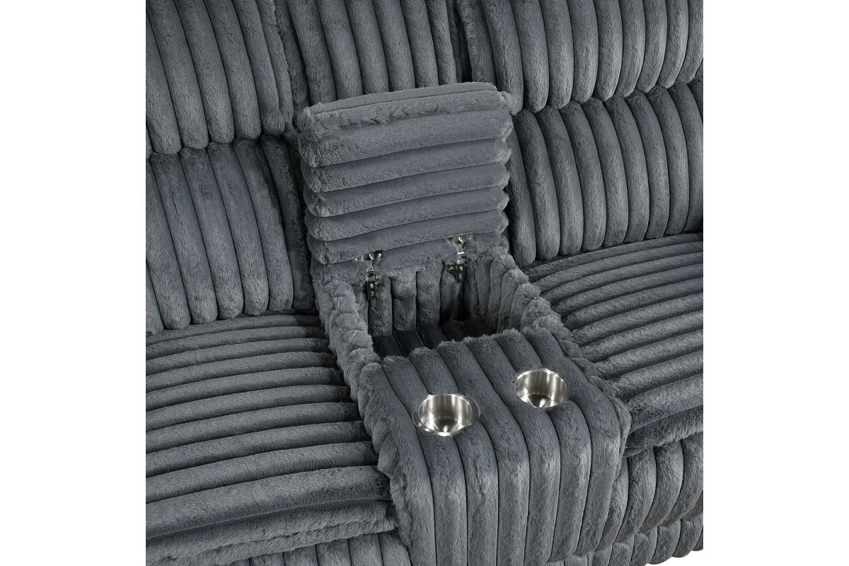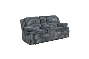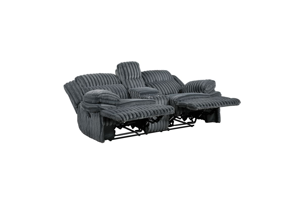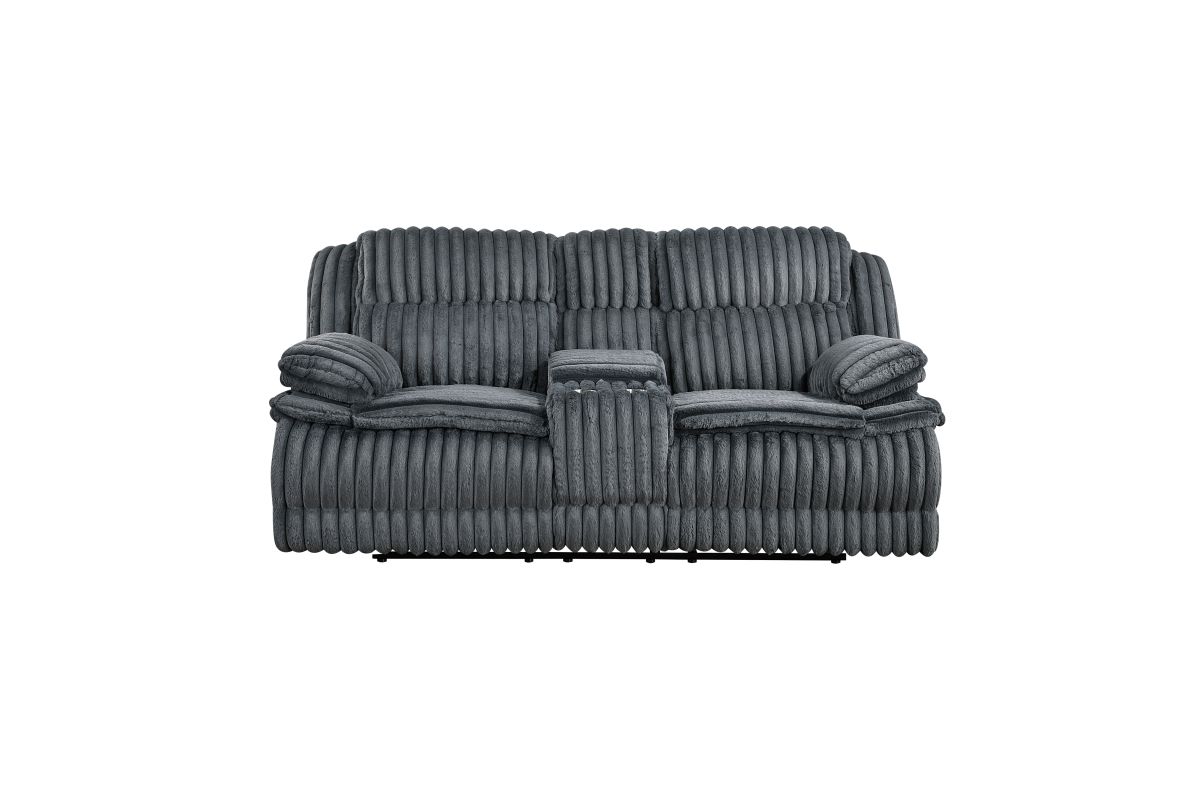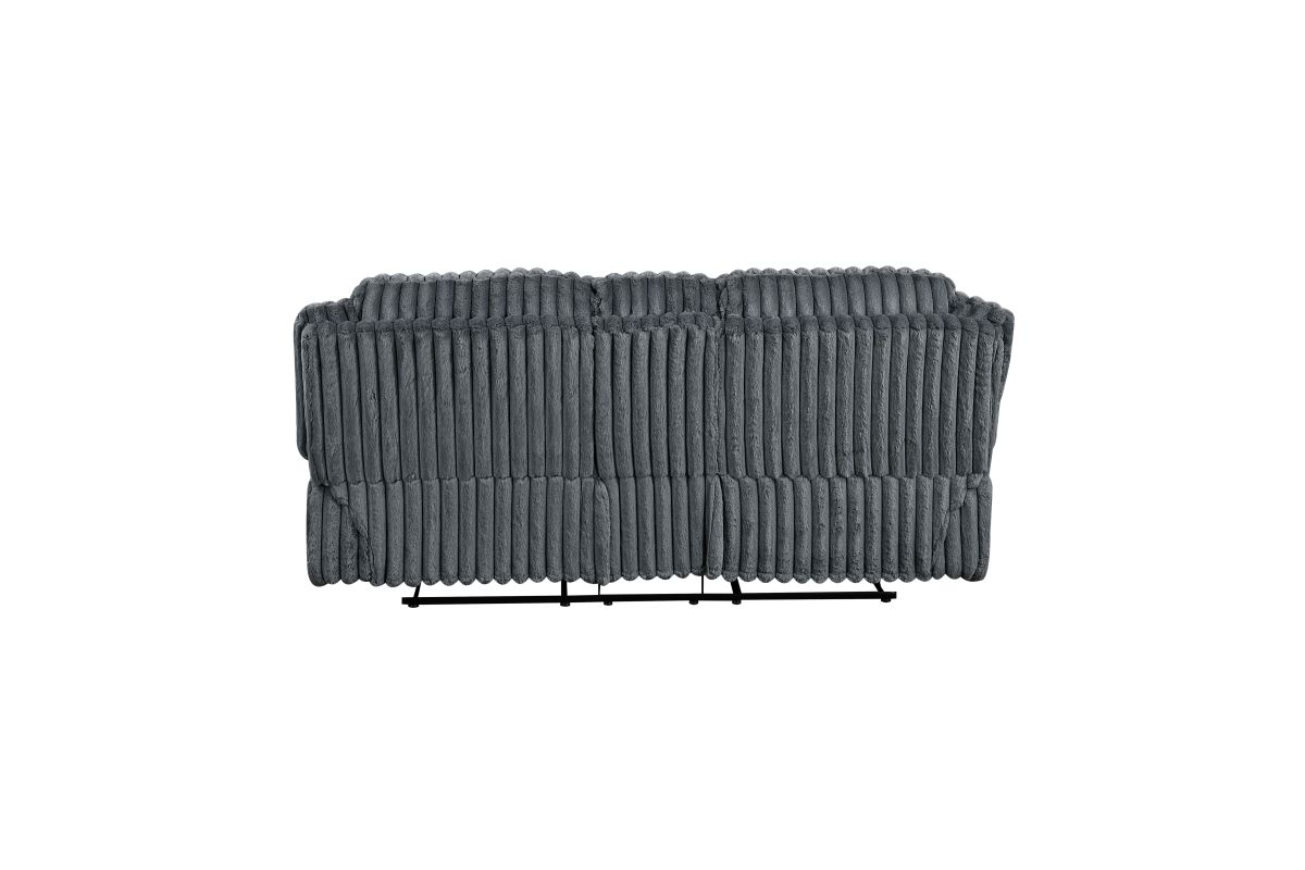 Upgrade your relaxation with this dual manual reclining loveseat with center console, designed for ultimate comfort and convenience. Featuring smooth pull-tab reclining seats, plush cushioning, and pillow-top armrests, this loveseat provides exceptional lumbar and full-body support for a cozy and indulgent experience. Upholstered in ultra-soft ribbed corduroy fabric, it adds a trendy yet inviting touch to any living space. The built-in center console includes dual cup holders and a hidden storage compartment, perfect for keeping essentials close at hand during movie nights or lounging. Built with a sturdy metal seat frame and reinforced reclining system, this loveseat ensures long-lasting durability and seamless reclining operation, making it an ideal addition to your living room, home theater, or entertainment space.