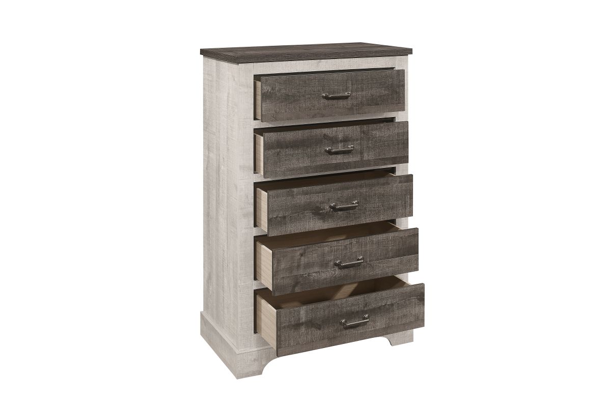 - 2-tone finish: rustic white and dark gray oak