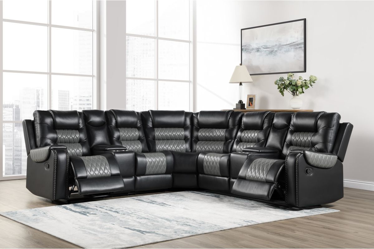 Elevate your living room comfort with the Hart 3-Piece Reclining Sectional (Model SH8890BLK*SC), featuring versatile reclining seats and a sleek black fabric upholstery. This sectional offers flexible seating and plush support, making it ideal for family gatherings, movie nights, or simply relaxing in style.