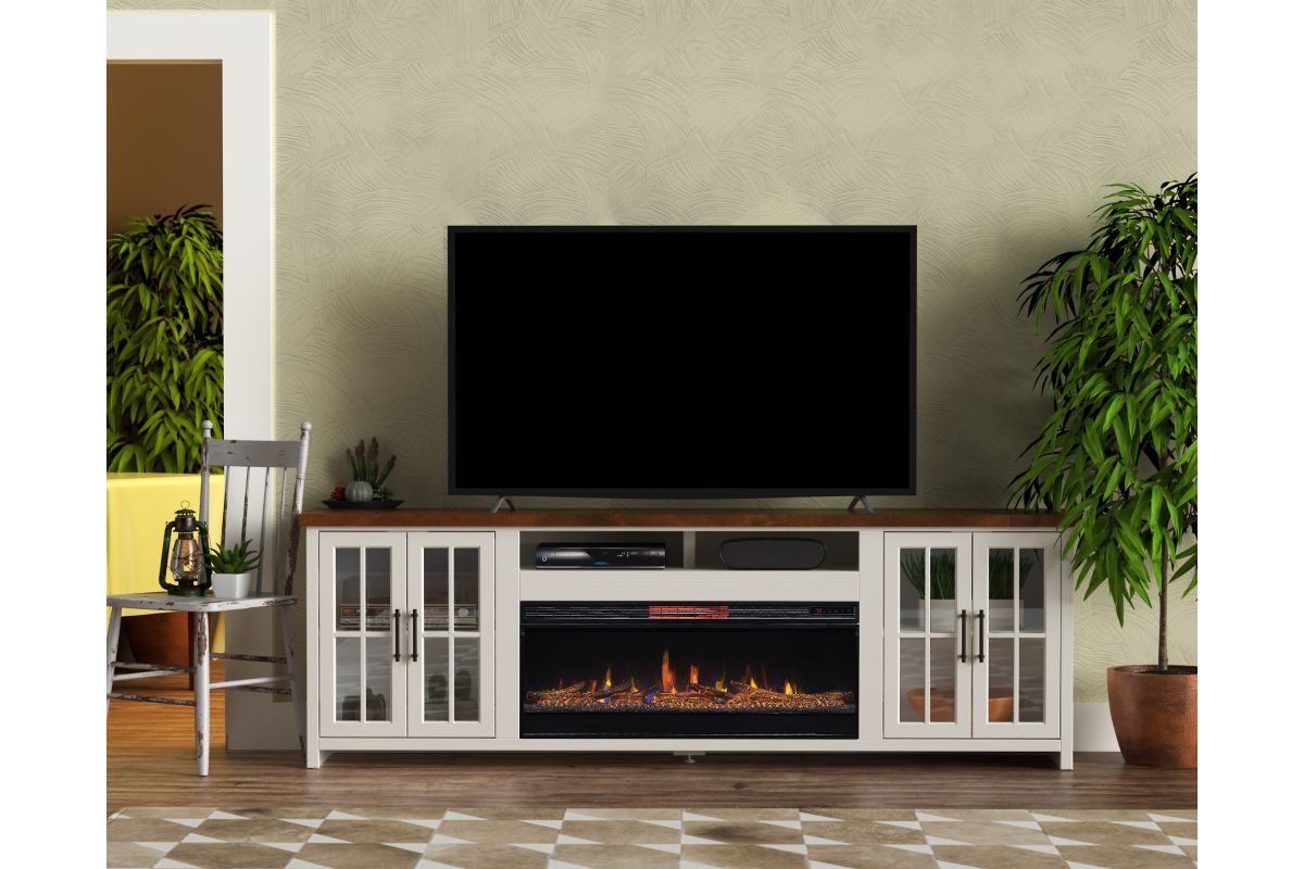 Sorry, the Hampton 97" Fireplace TV Stand Console - Jasmine and Barnwood is no longer available. We've left this page up for reference only. Check out the great alternatives on this page or call 248-481-2208 or Chat with a Gardner White Sales Specialist about similar products.