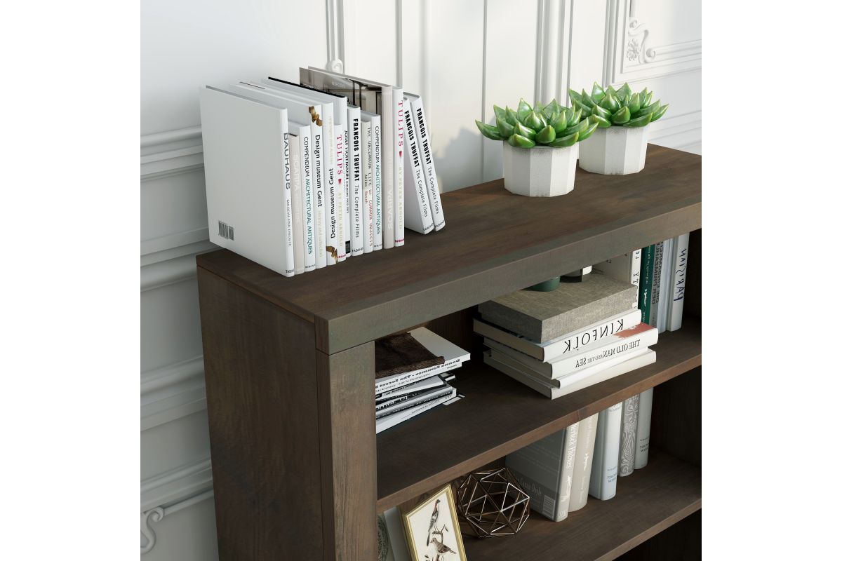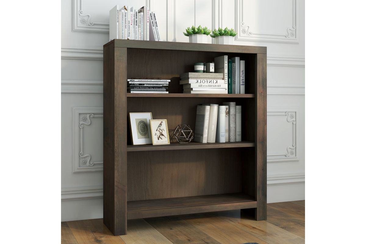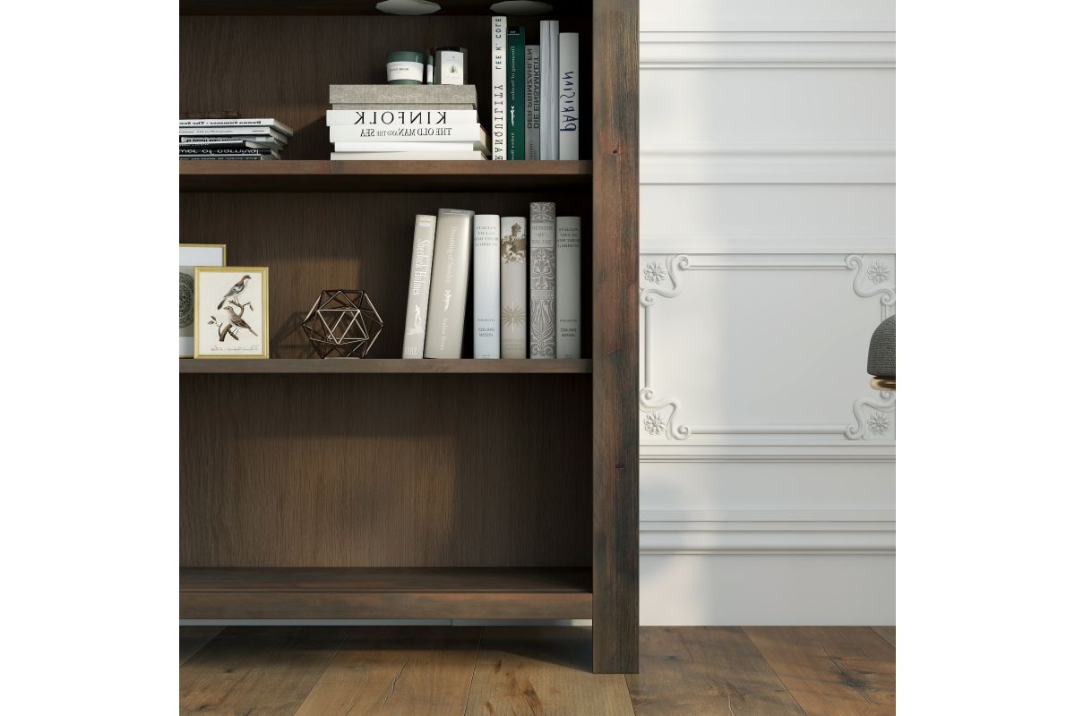 The Joshua Creek 36" high bookcase boasts a striking and modern take on rustic charm. Skillfully crafted from Knotty Alder solids and veneers, this bookshelf features a rich Barnwood finish and two adjustable shelves. Whether placed in your home office to store essentials or in your living room to showcase home décor and your book collection, this bookshelf will be a high-quality, picturesque addition to your home. Fully assembled upon arrival, all furniture from Bridgevine Home is ready to unbox and enjoy.