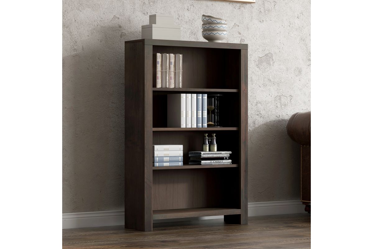 The Joshua Creek 48" high bookcase boasts a striking and modern take on rustic charm. Skillfully crafted from Knotty Alder solids and veneers, this bookshelf features a rich Barnwood finish and three adjustable shelves. Whether placed in your home office to store essentials or in your living room to showcase home décor and your book collection, this bookshelf will be a high-quality, picturesque addition to your home. Fully assembled upon arrival, all furniture from Bridgevine Home is ready to unbox and enjoy.