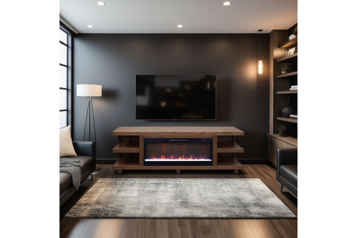 - Minimal Assembly required - use four (included) screws to secure fireplace insert to console