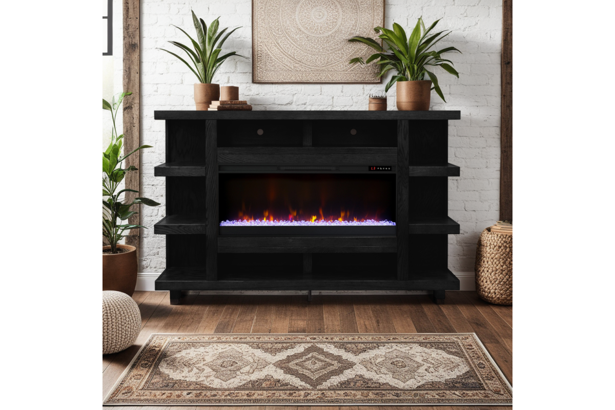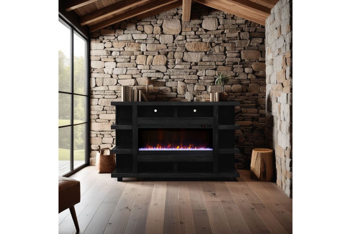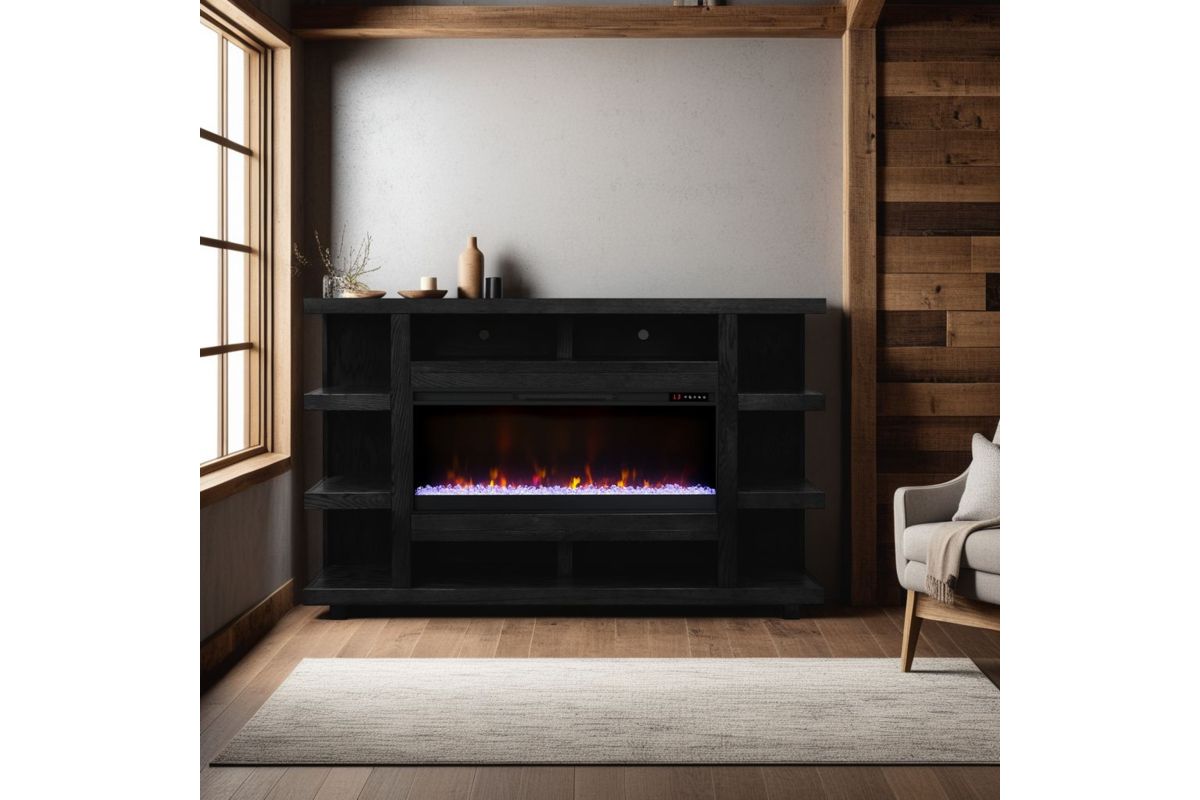 The Laurel Canyon 72 inch Fireplace Mantel delivers the perfect blend of modern, urban style with rustic tranquility. Skillfully crafted from Oak Solids and Veneers, this robust Mantel with Electric Fireplace is available in your choice of three finish options and features unique, open-ended shelving. Ideal to place below a wall-mounted TV, this Fireplace Mantel will provide ample space to showcase home décor and house media and gaming consoles. Cable management openings on the back panel will keep all cords and wires concealed. The 42" Electric Fireplace Insert with crystals and faux wood burning logs includes multiple settings that will heat up to 400 square feet and a remote control. Four (included) screws make securing the fireplace insert to the console quick and simple. From mountain lodge to urban loft, the clean lines of Laurel Canyon will be a stunning and welcome addition to any home.