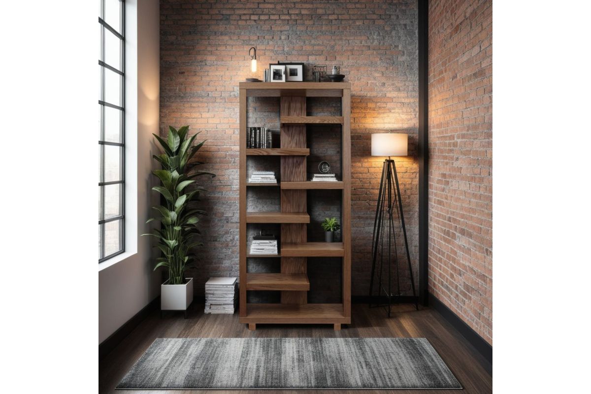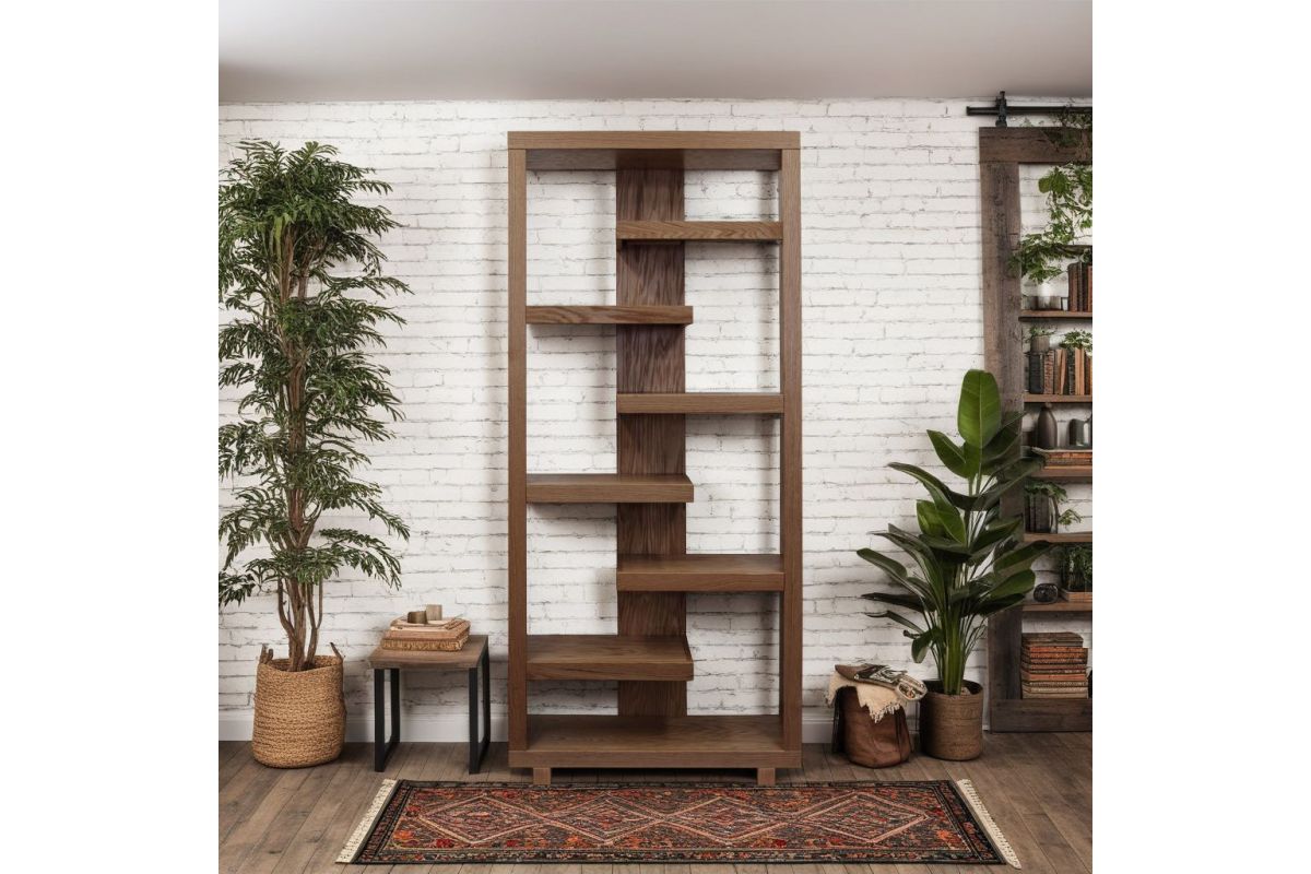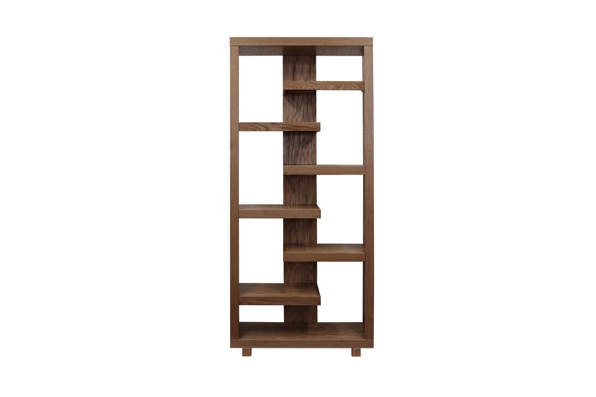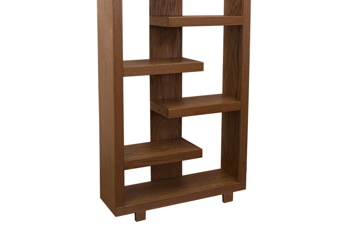 The Laurel Canyon 80 inch high Bookcase delivers the perfect blend of modern, urban style with rustic tranquility. Skillfully crafted from Oak Solids and Veneers, this robust Bookshelf is available in your choice of three finish options. The unique, six alternating shelves will provide ample space to showcase home décor, house your book collection or organize office supplies. From mountain lodge to urban loft, the clean lines of Laurel Canyon will be a stunning and welcome addition to living room, home office or bedroom. Fully assembled upon arrival, this piece is ready to unbox and enjoy.