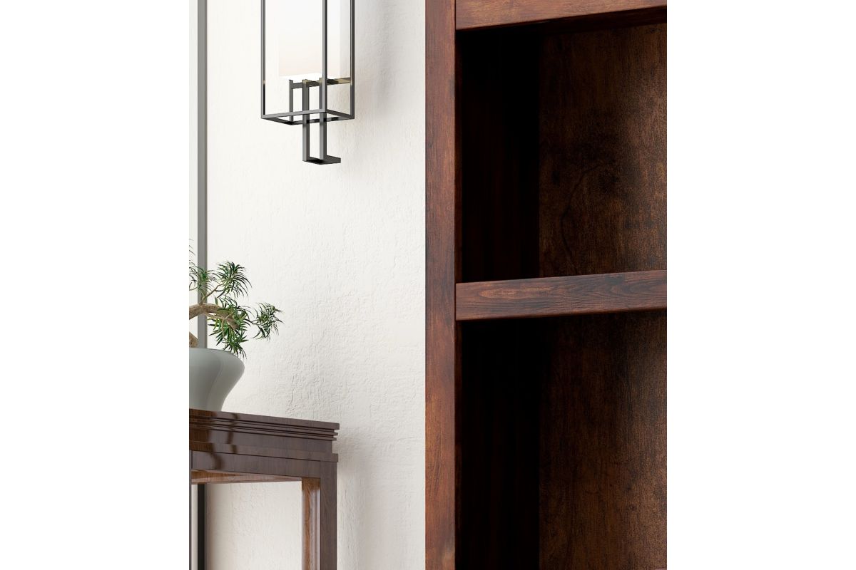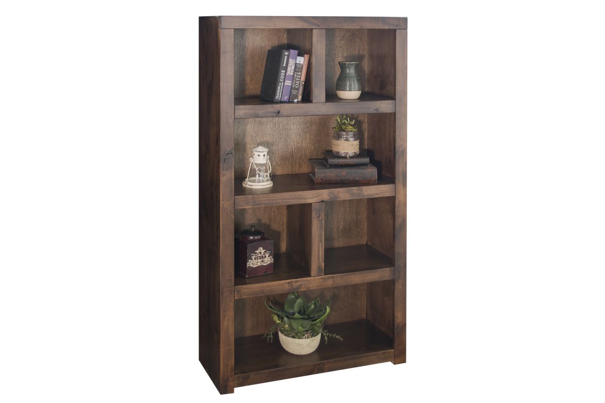 The Sausalito 64" high Bookcase from Bridgevine home delivers a modern robust silhouette with a slightly rustic and urban feel. Skillfully crafted from Knotty Alder Solids and Veneers, this bookshelf boasts intentional distressing and a rich Whiskey finish that enhances the natural wood grain. Featuring six shelving areas, this bookshelf is ideal to showcase home décor, house your book collection or organize office supplies. Whether placed in your living room, home office or bedroom, this bookcase will be a welcome addition to your home. Fully assembled upon arrival, all furniture from Bridgevine Home is ready to unbox and enjoy.