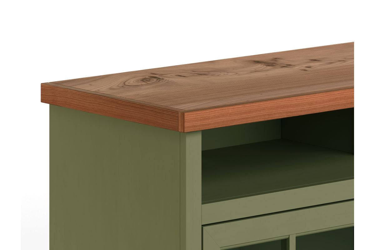 - Two-Tone Sage Green and Fruitwood Finish