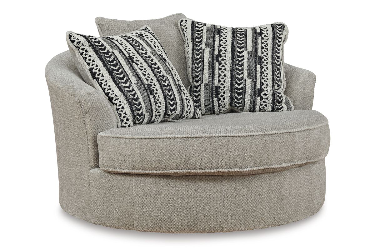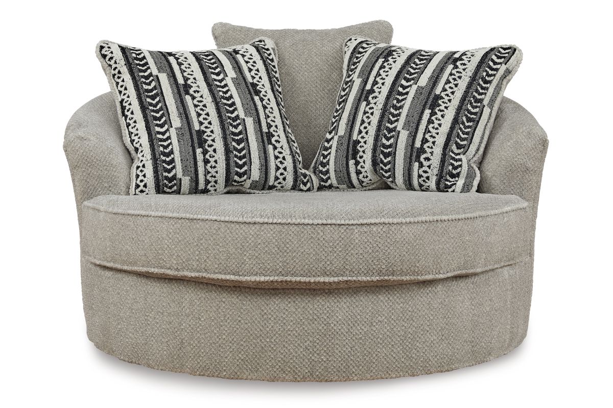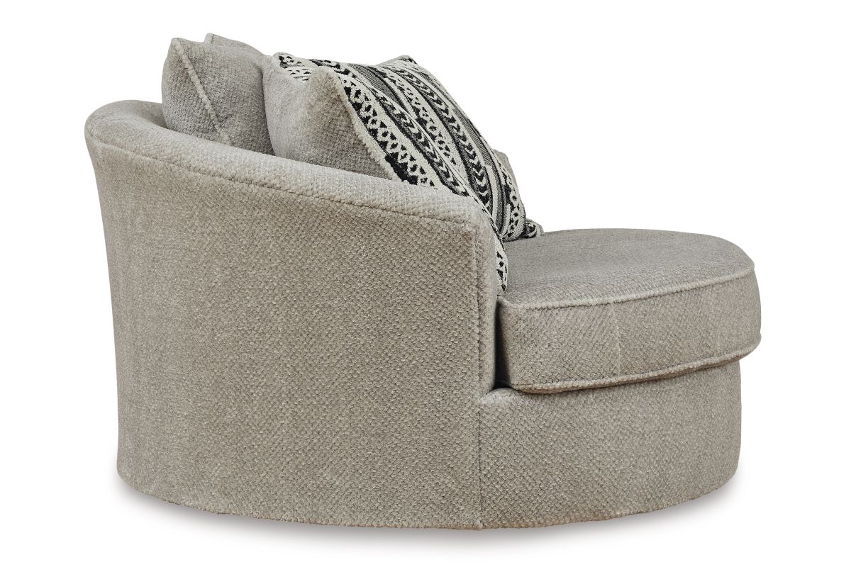 This oversized swivel accent chair caters to your need for contemporary comfort. Large in scale and decked out in feel-good fabric, it gives you space to sprawl out. And the 360-degree swivel motion makes it easy to view the TV or chat with others in your seating area. Quality time has never been so cozy. No assembly required.