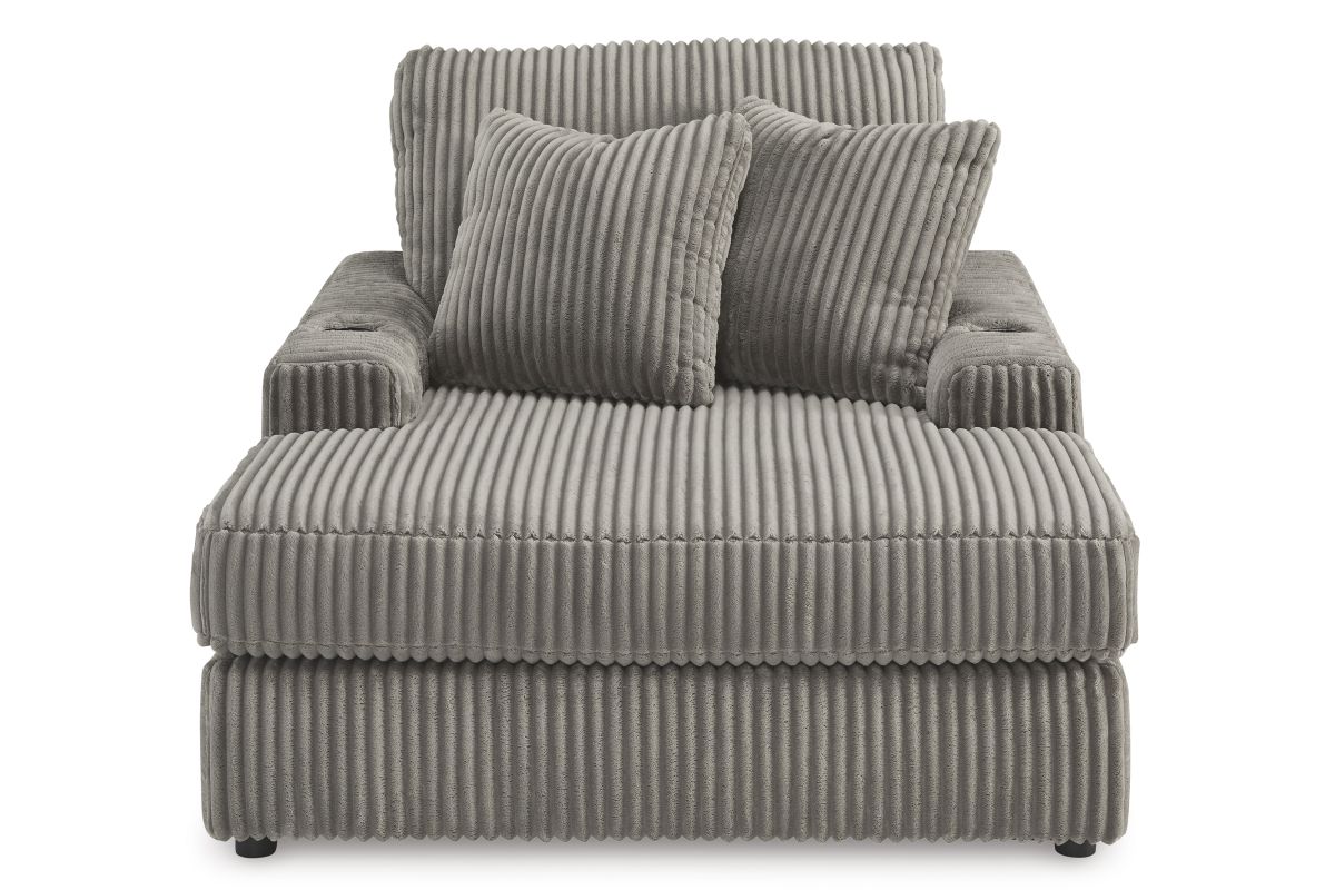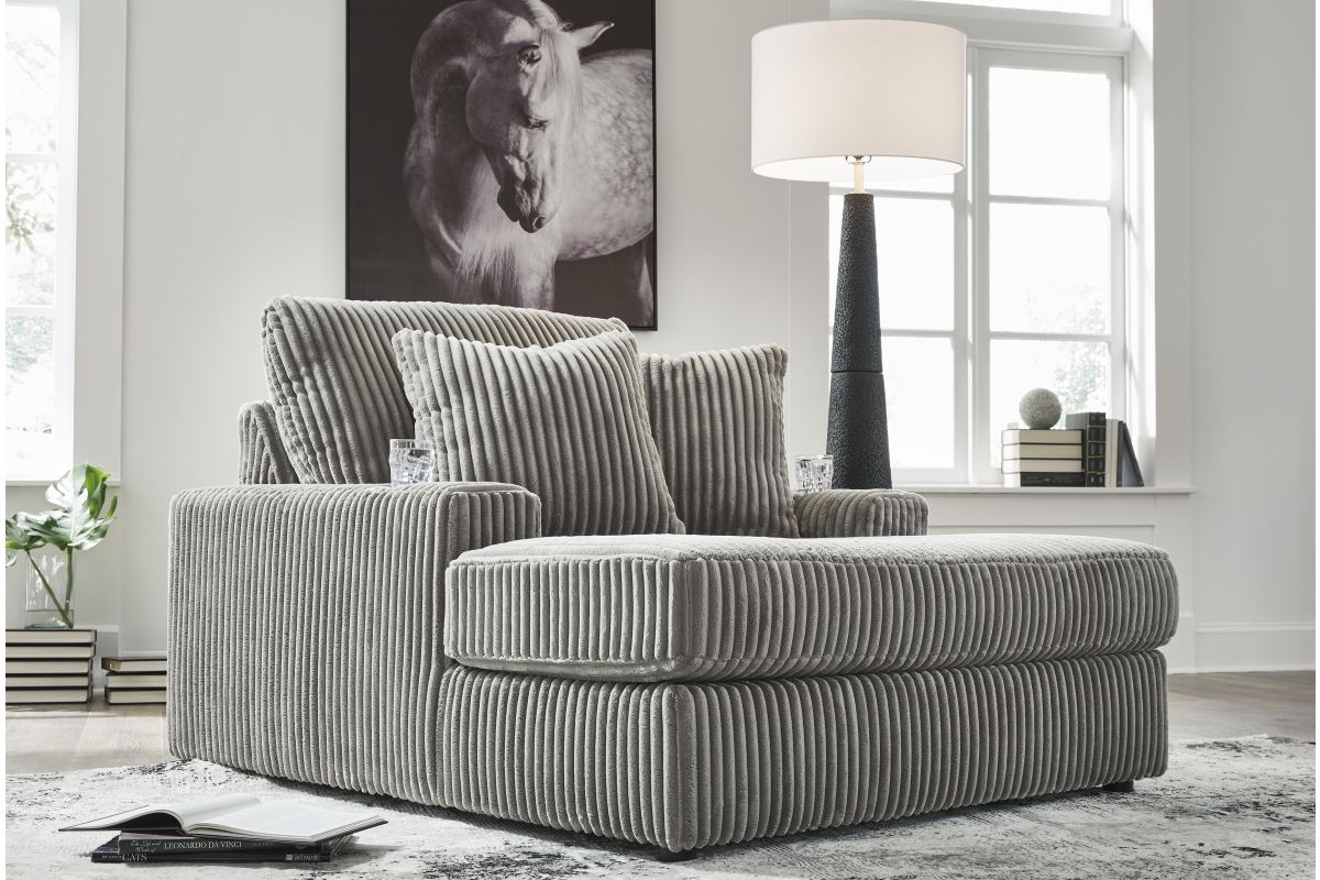 Plush and posh. Showcase your eye for on-trend texture with the statement-making cord upholstery of this chaise. Its stunningly soft fabric entices in a warm neutral hue, complementing contemporary color palettes. Sink into the cushions and plan to stay a while—this cozy oversized chaise highlights your high-end approach to comfort and style.