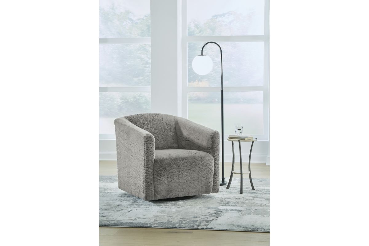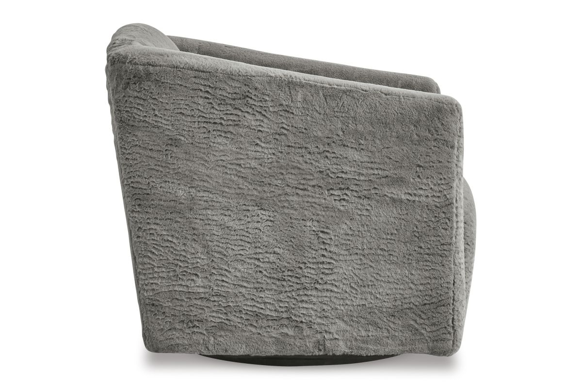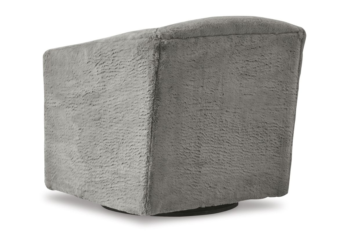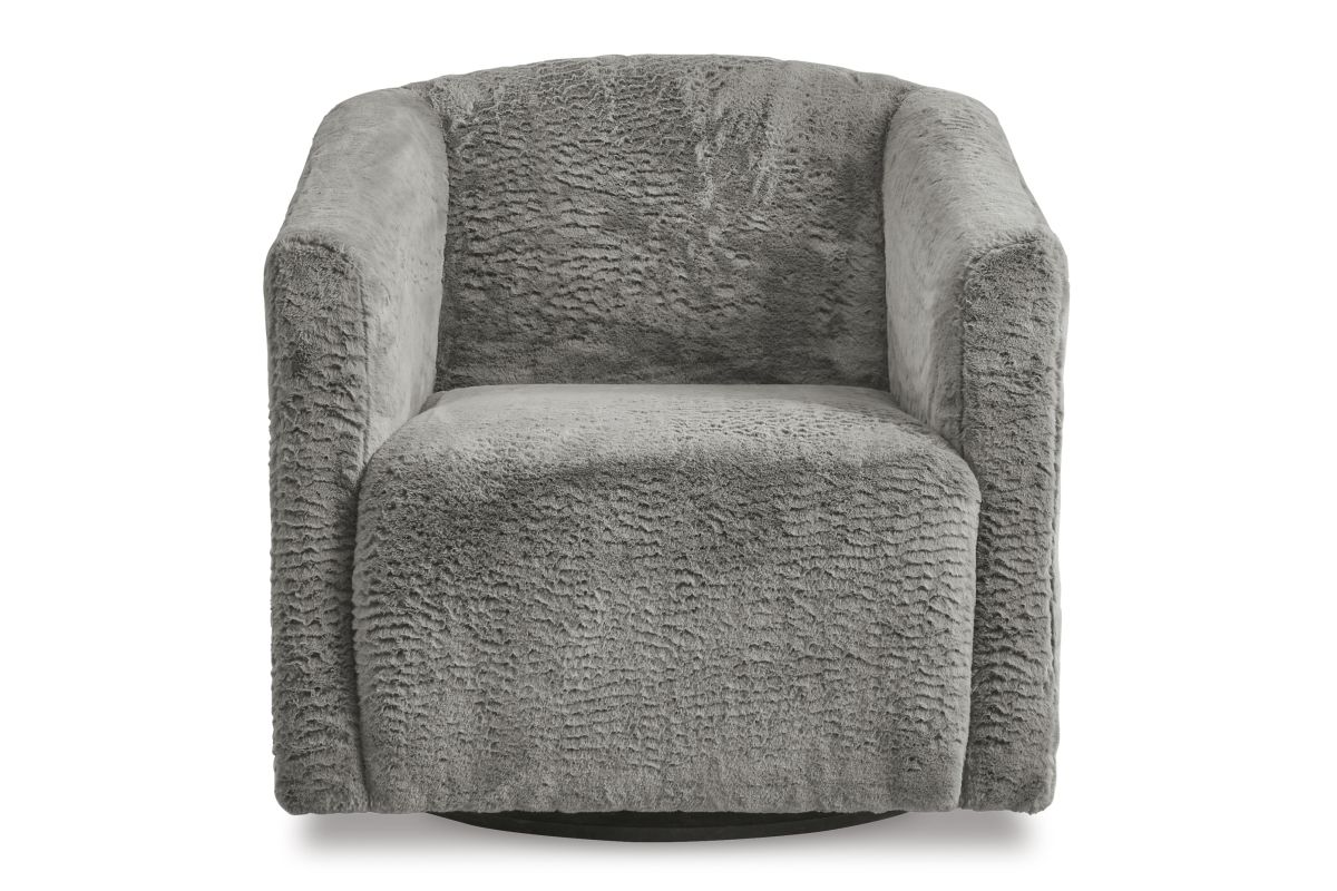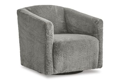 Craft a chic and cozy seating space with this accent chair. The swivel base makes it simple to hop from one conversation to another when hosting. Faux rabbit fur upholstery has a luxe look with a universal appeal. Whether you're serving up charcuterie to lounging guests or curling up with a book on your own, this chair suits your needs in style. No assembly required.