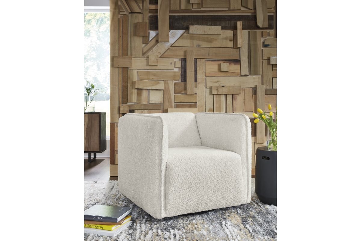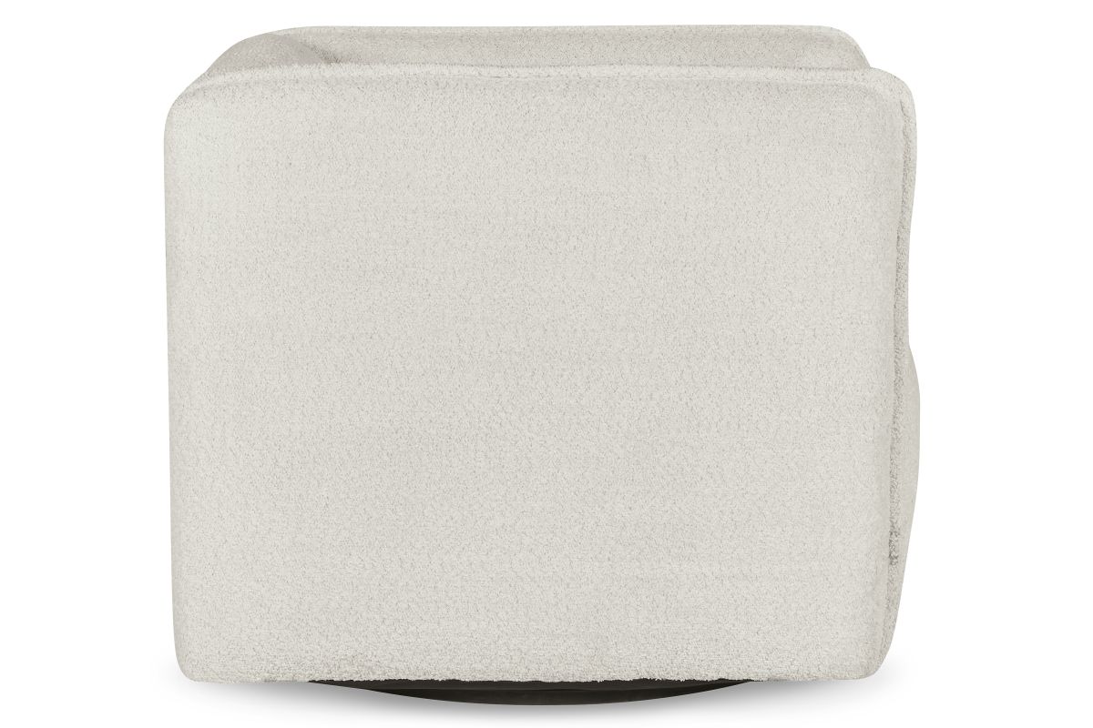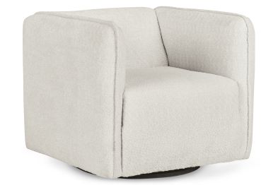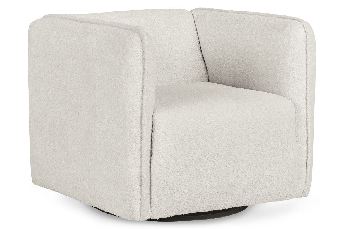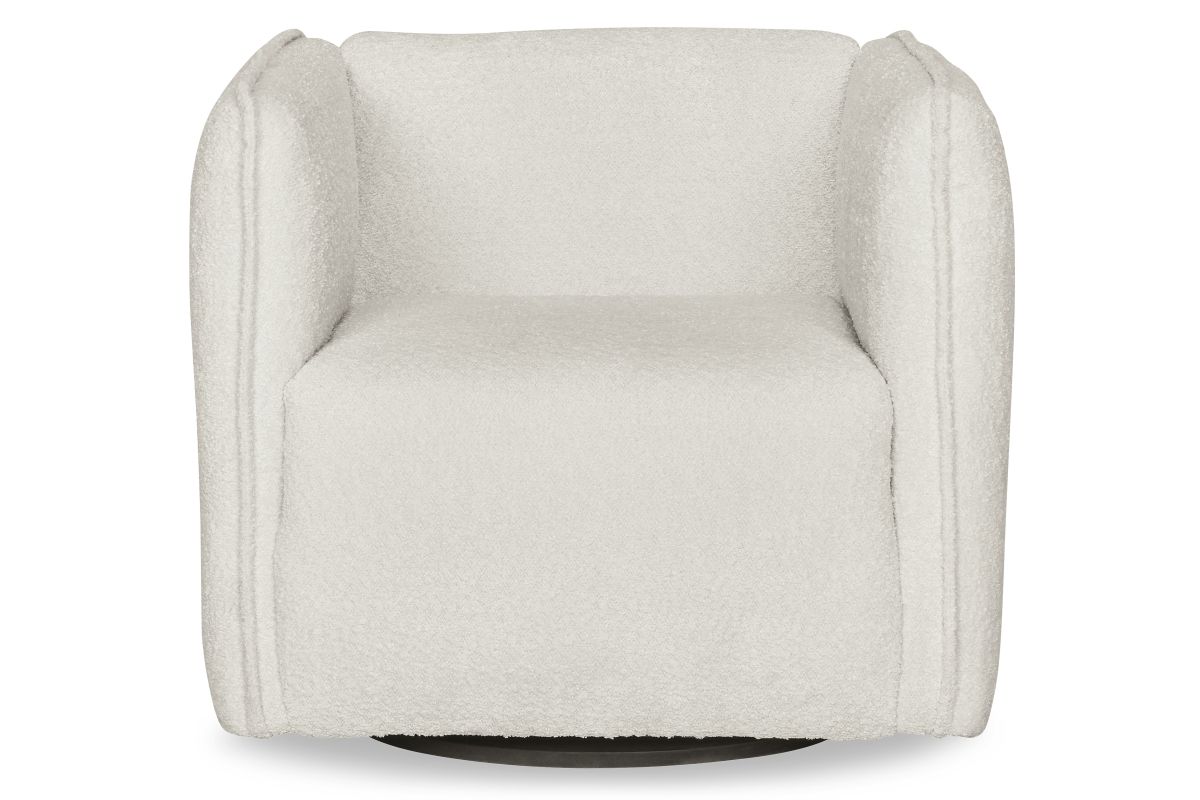 Take clean-lined comfort for a spin with this swivel accent chair. Its neutral upholstery is made deliciously dramatic by flange welting and a boucle-like weave. With 360-degree swivel motion, this chair merges forward-thinking function with a contemporary aesthetic. No assembly required.
