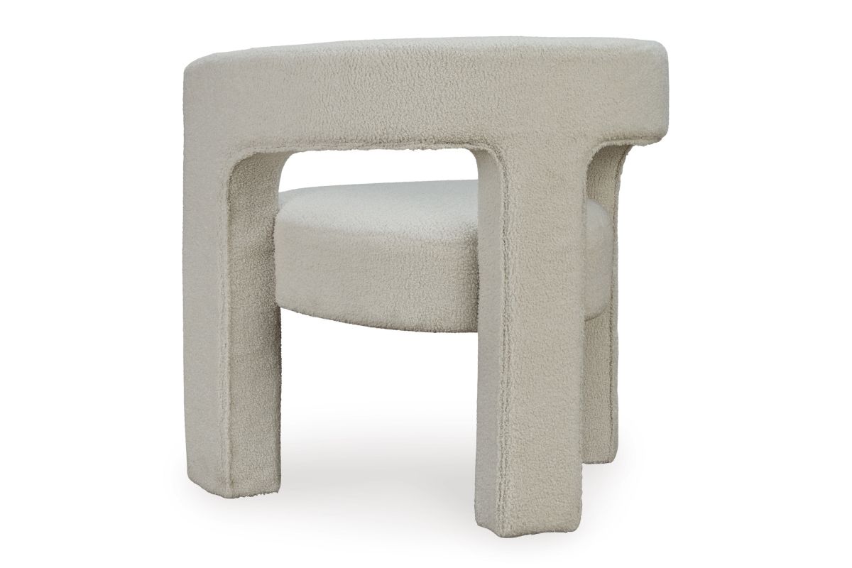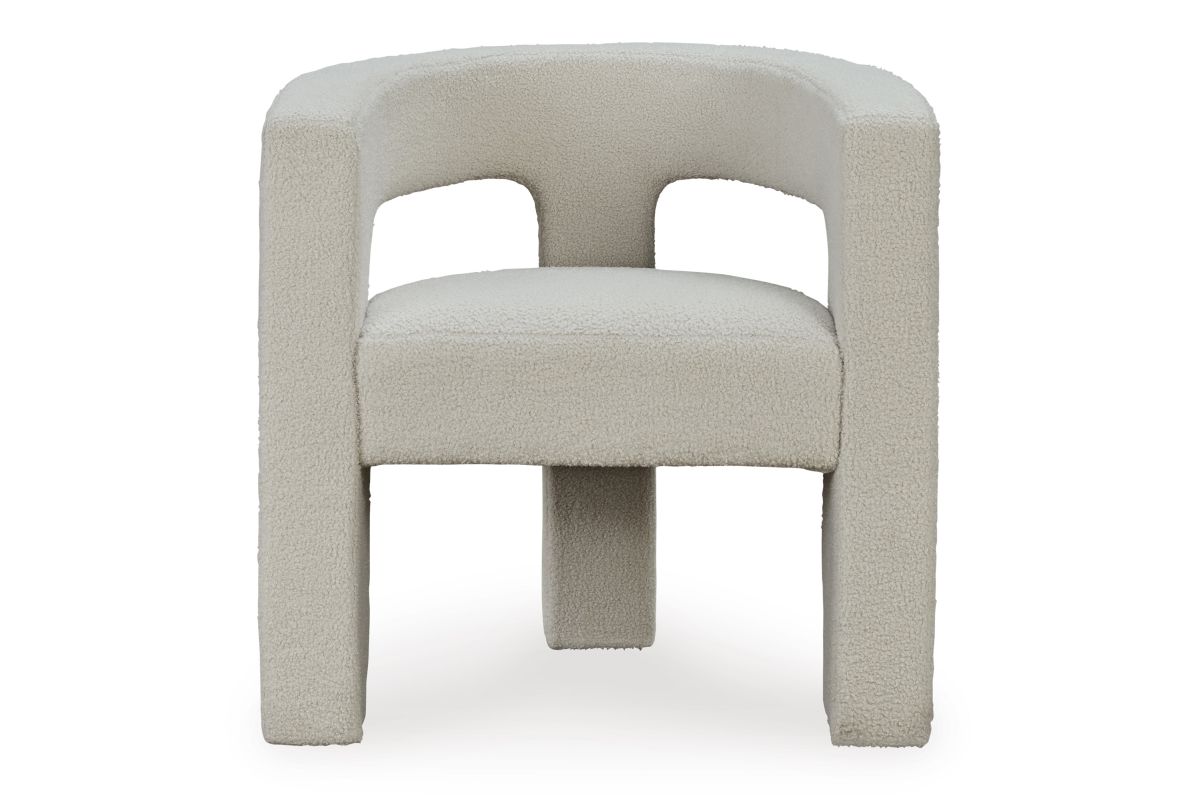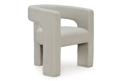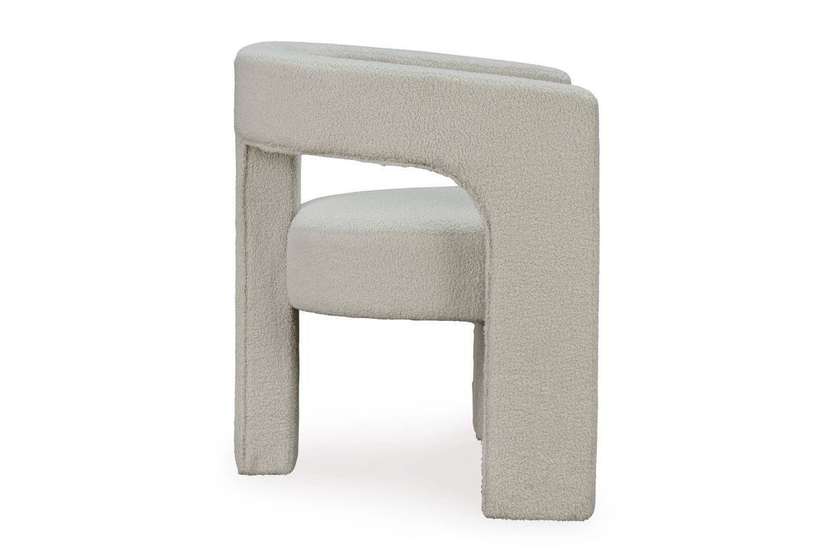 With its sculptural silhouette and barrel-back design, this accent chair exudes runway-inspired style. Peek-a-boo styling and decadent boucle upholstery combine both fashion and comfort seamlessly. Who says cutouts are just for your wardrobe? No assembly required.
