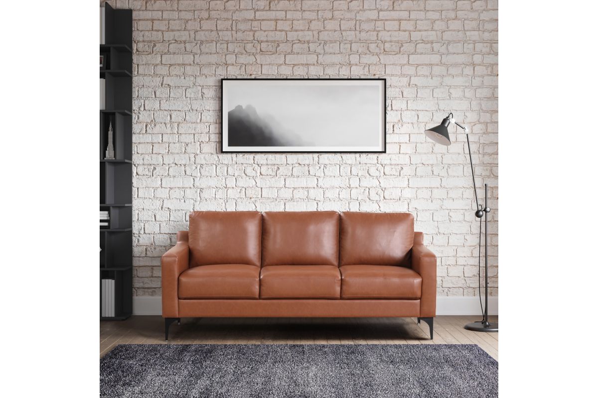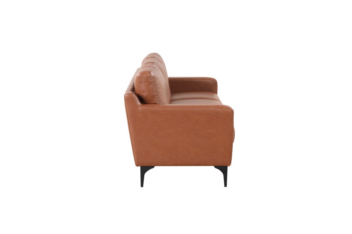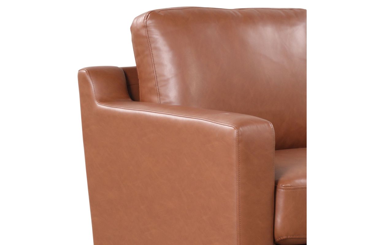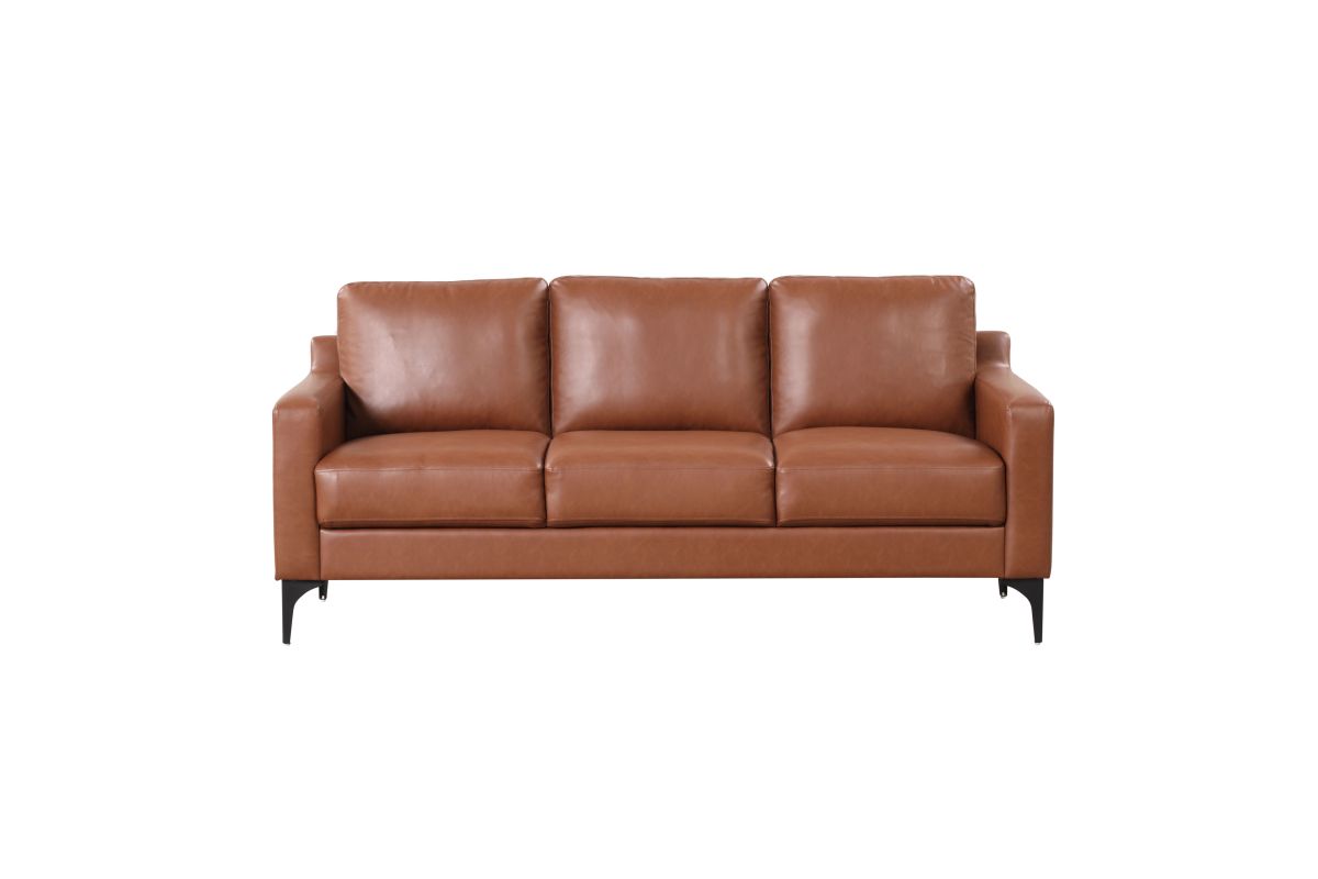 Brighten up your living space with the Serta Florence Sofa Set! The Vegan Leather upholstery’s warm brown tone provides a pop of earth-toned color, while the high-density foam and pocket coils within the compressed seat and back cushions ensure comfort for every guest. The solid hardwood frames give the pieces durability, and the metal legs round out the set’s modern sophistication. Asembly is required upon delivery.