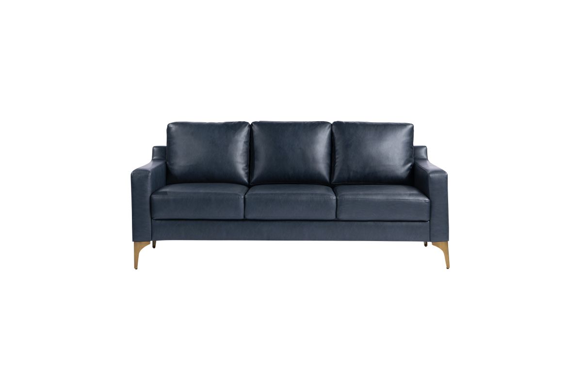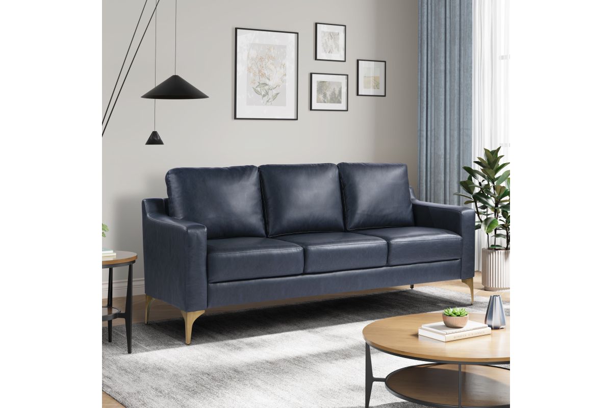 Brighten up your living space with the Serta Florence Sofa Set! The Vegan Leather upholstery’s blue tone provides a pop of color, while the high-density foam and pocket coils within the compressed seat and back cushions ensure comfort for every guest. The solid hardwood frames give the pieces durability, and the metal legs round out the set’s modern sophistication. Asembly is required upon delivery.