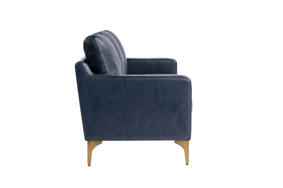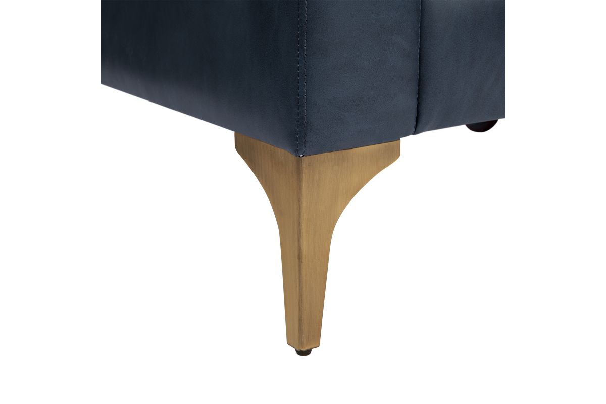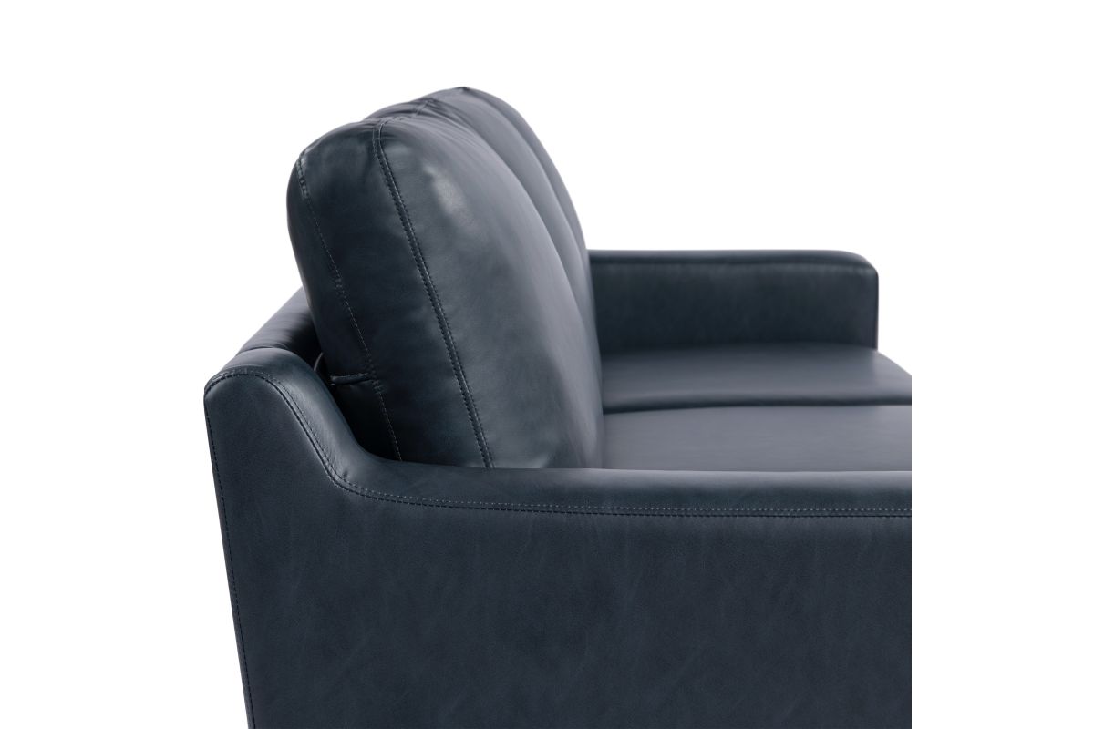 - Upholstered in a Navy Blue Vegan Leather