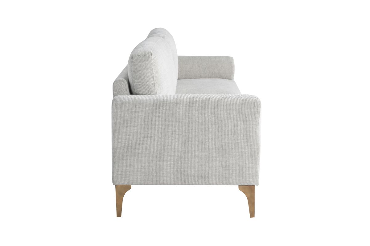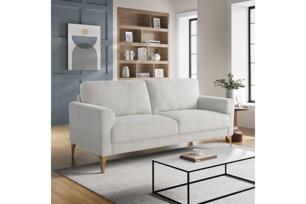The Miley Sofa is the ideal combination of contemporary design and lasting comfort. Upholstered in premium woven fabric, it offers a sophisticated look that complements any décor. Built on a solid hardwood frame, this sofa is crafted for long-term durability, while its metal legs add a modern touch and ensure sturdy support. The removable back cushions allow for easy cleaning and customizable comfort. High-density foam in the seat cushions provides a plush yet supportive feel, perfect for lounging or entertaining. Whether you're relaxing solo or hosting guests, the Miley Sofa offers both style and functionality. Asembly is required upon delivery.