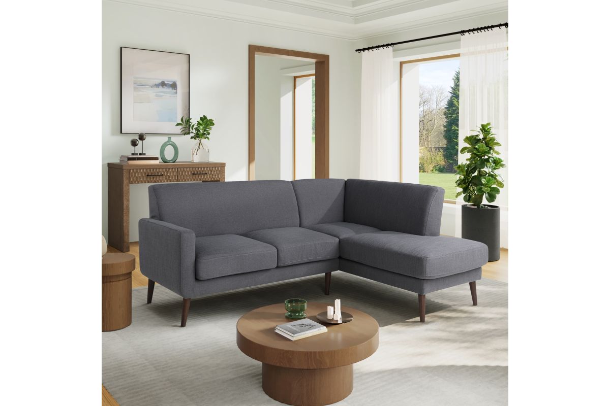Introducing the Sheldon Bumper Sectional Sofa, a perfect blend of durability and comfort. This sofa features a kiln-dried solid hardwood frame and sturdy rubber wood legs, ensuring long-lasting support. With pocket coils and high-density foams, it provides exceptional comfort. The removable seat and back cushions add versatility and ease of maintenance, while the quality fabric upholstery offers a touch of elegance to any living space. Asembly is required upon delivery.