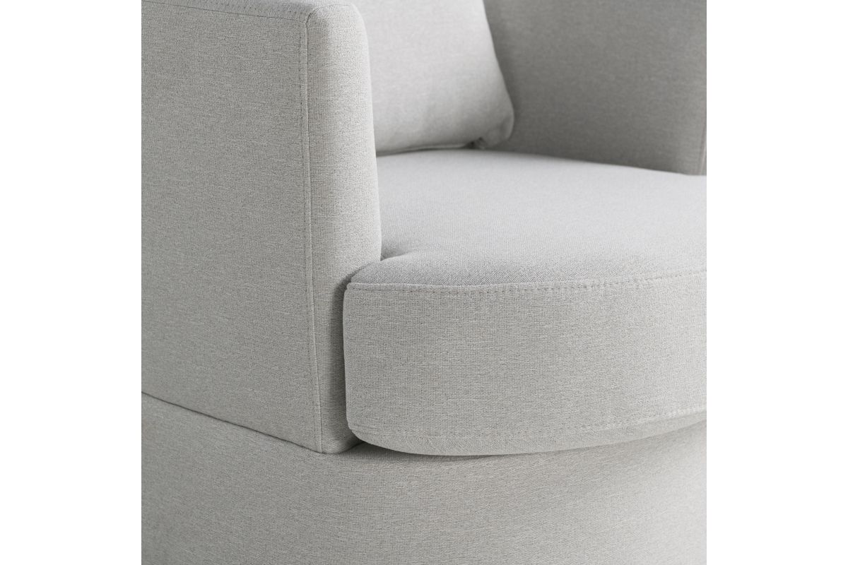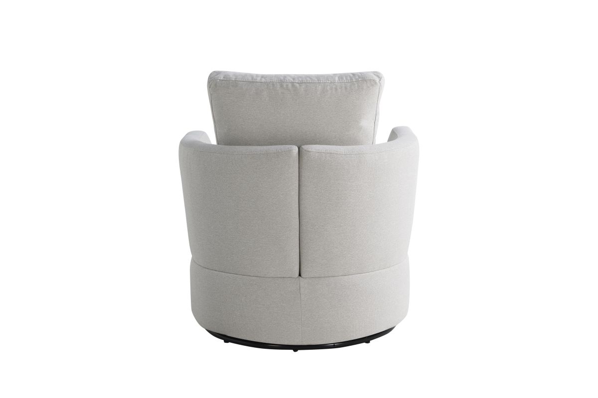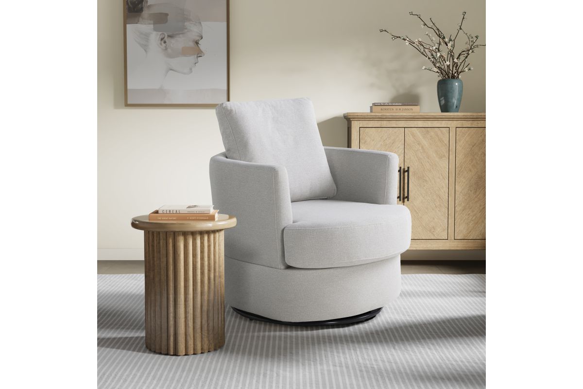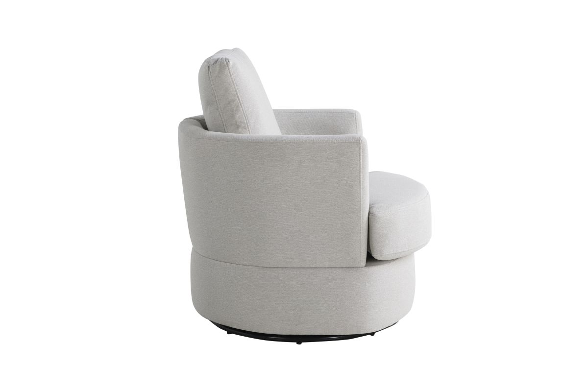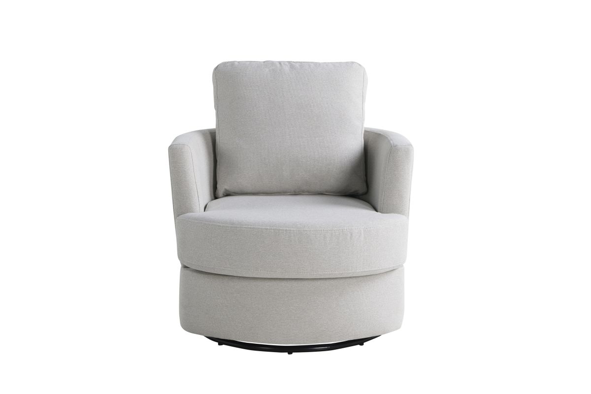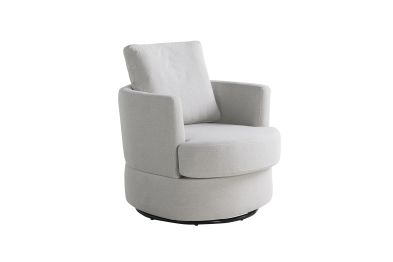 Introducing the Eddington Swivel Accent Chair, a stylish and functional addition to any room. This single swivel chair is upholstered in high-quality polyester fabric, ensuring both durability and comfort. It features high-density foam and pocket coil support, providing exceptional seating comfort. The chair is dacron wrapped around a solid hardwood frame, guaranteeing long-lasting sturdiness and elegance. Perfect for adding a touch of sophistication to your living space. Asembly is required upon delivery.