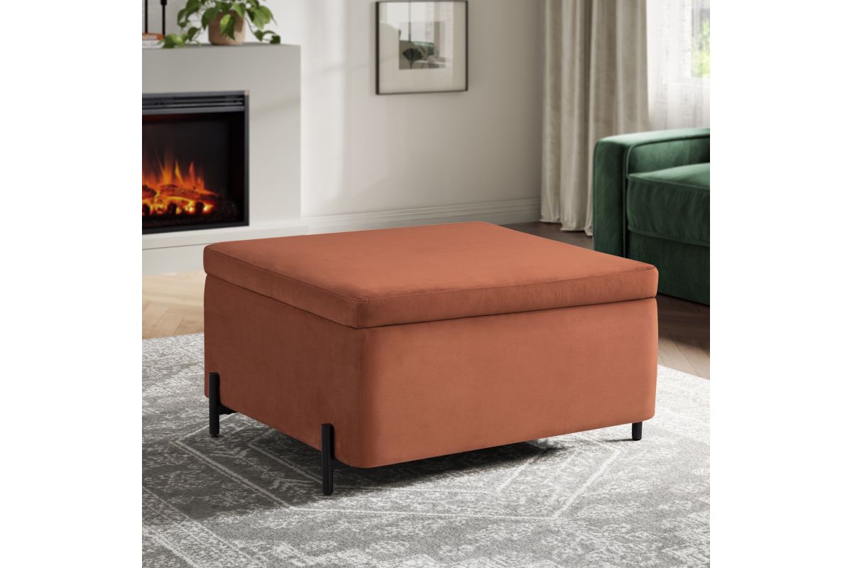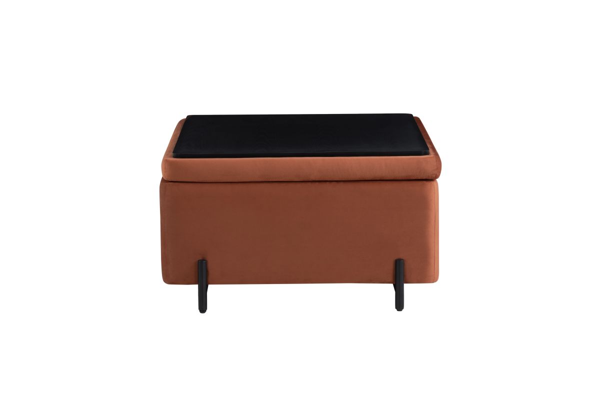 Make a statement with this spacious 31.1" x 31.1" x 18.1" storage ottoman, designed to bring both elegance and functionality to your home. With its generously sized frame, this multi-purpose piece provides ample seating and hidden storage while serving as a chic centerpiece for your living space. The reversible storage lid easily flips to transform from a plush velvet seat into a sleek coffee table surface, making it perfect for entertaining or everyday use. The expansive storage compartment is ideal for keeping blankets, pillows, books, and other essentials neatly tucked away. Upholstered in luxurious velvet, this ottoman exudes sophistication, while the solid hardwood frame and sturdy metal legs provide lasting strength and stability. Designed for convenience and quick assembly, this large storage ottoman is the perfect blend of beauty and practicality for modern living. Asembly is required upon delivery.