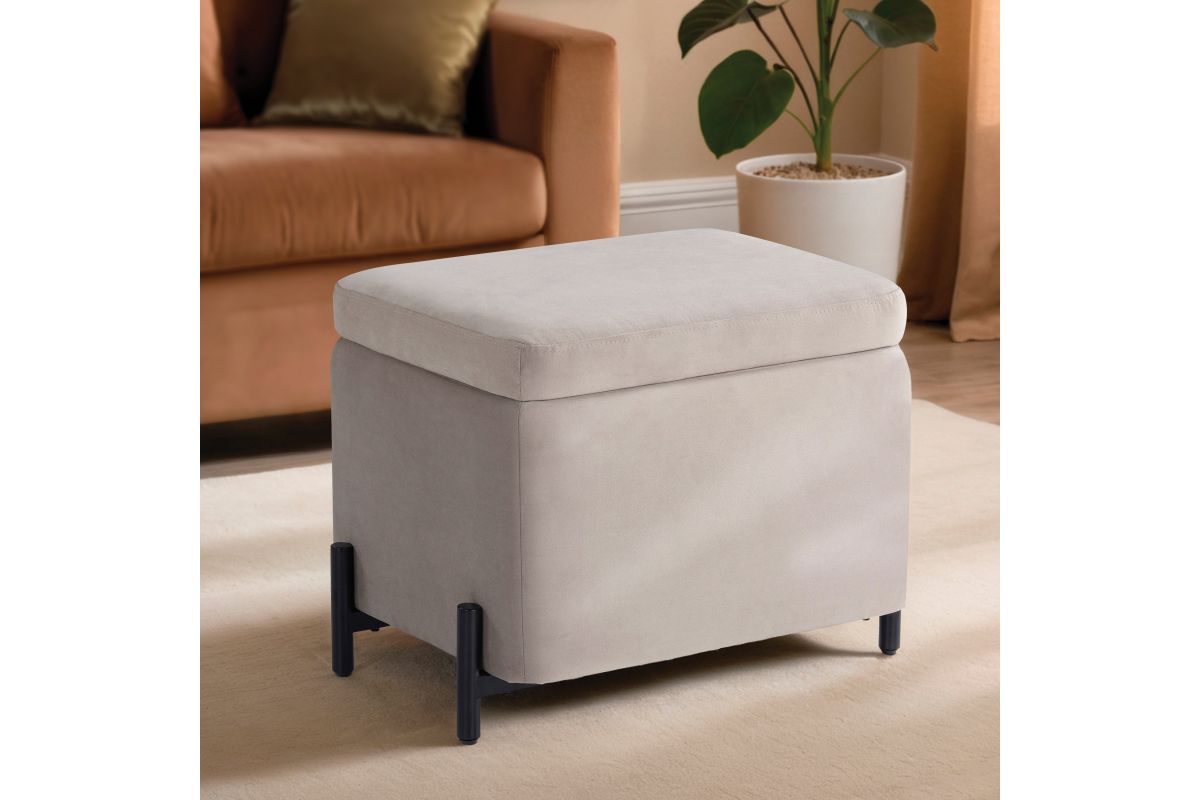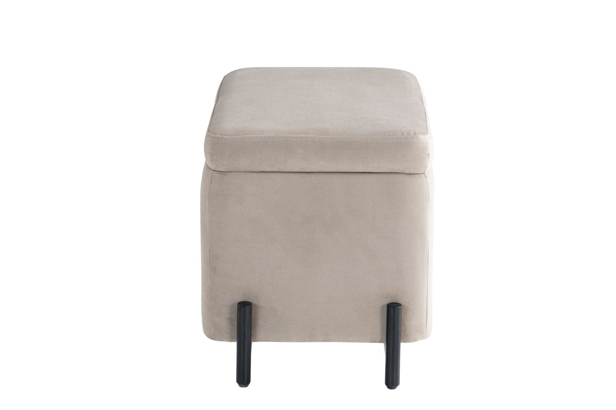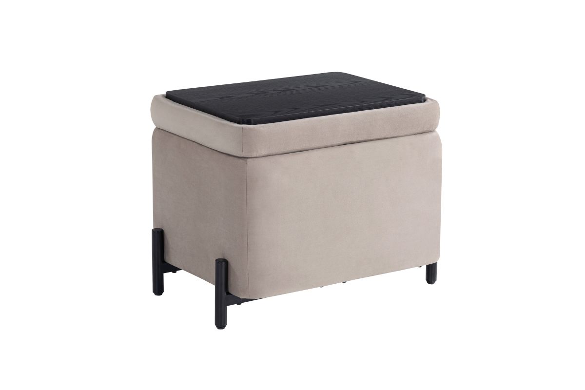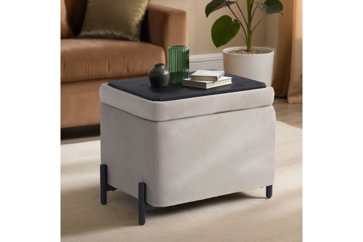 Perfect for compact spaces, this 24" x 16" x 18" storage ottoman combines style, functionality, and convenience. Designed for smaller rooms, apartments, or cozy nooks, it features a reversible storage lid that effortlessly transforms from a plush velvet-topped seat to a smooth coffee table surface. Despite its space-saving footprint, the roomy storage compartment provides ample space to tuck away blankets, books, or everyday essentials, keeping your space neat and organized. Upholstered in soft, high-quality velvet, it brings a touch of elegance to any setting, while the solid hardwood frame and sturdy metal legs ensure long-lasting durability. Simple to assemble and endlessly versatile, this small storage ottoman is the perfect solution for stylish storage and extra seating in any home. Asembly is required upon delivery.
